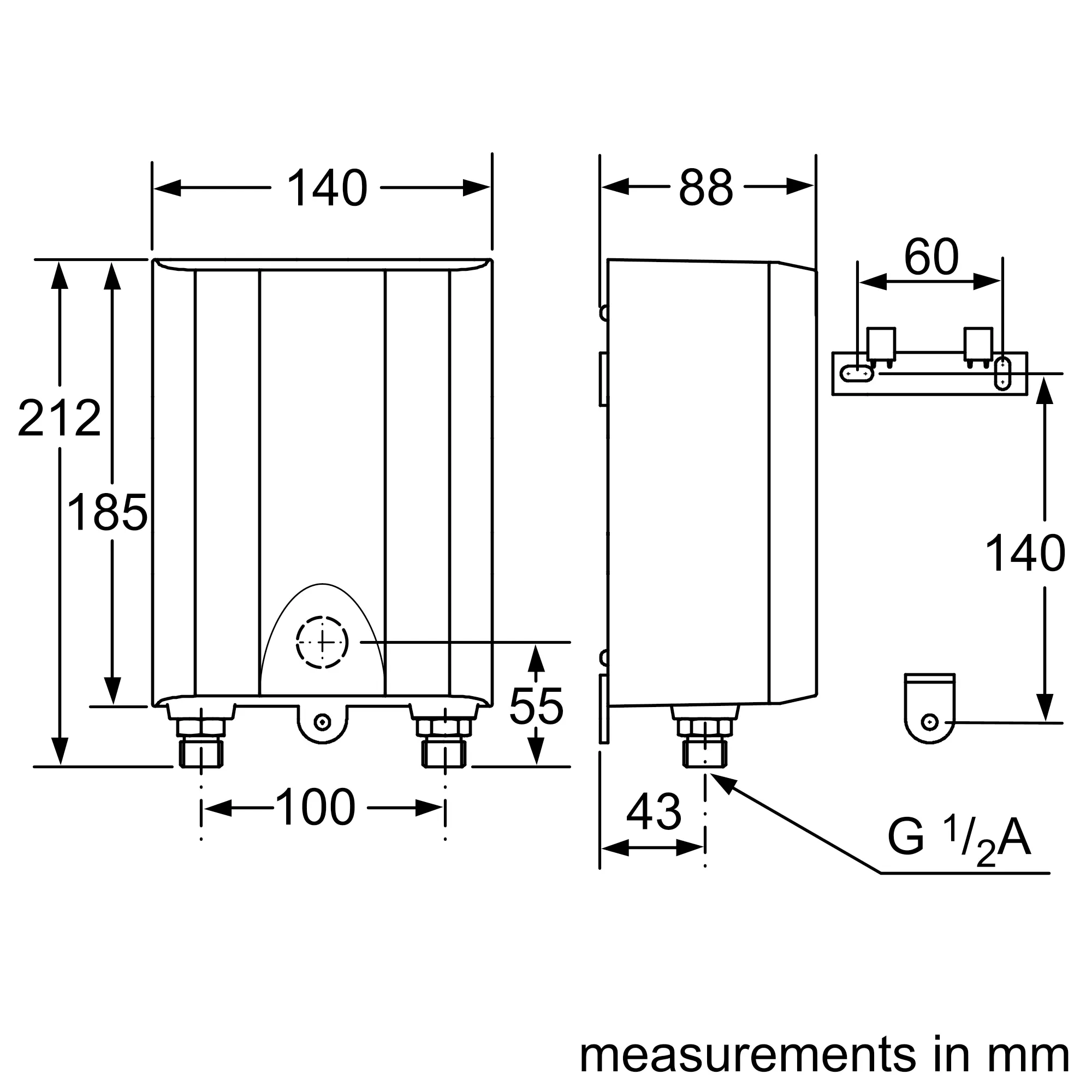 Hot water rating (38 °C) 3.2 l/min