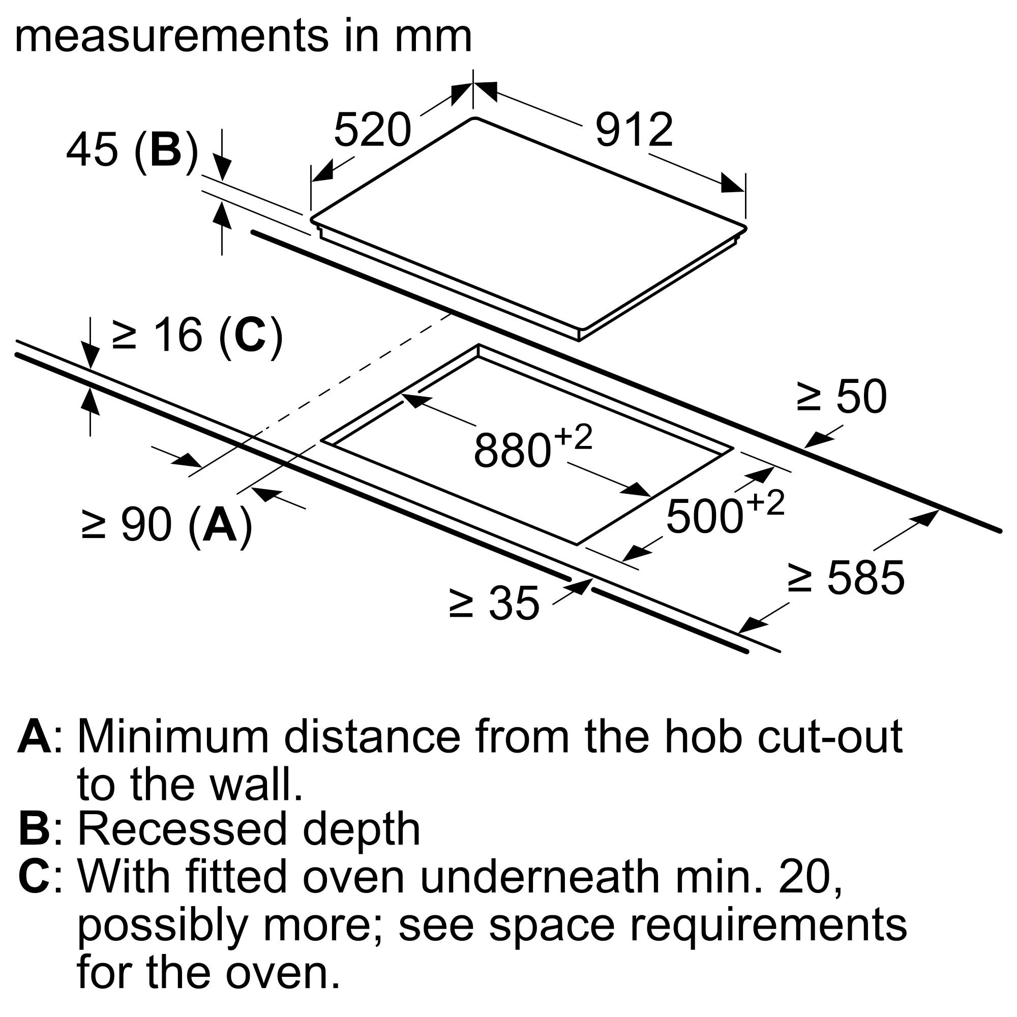 electric hob 90 cm surface mount with frame