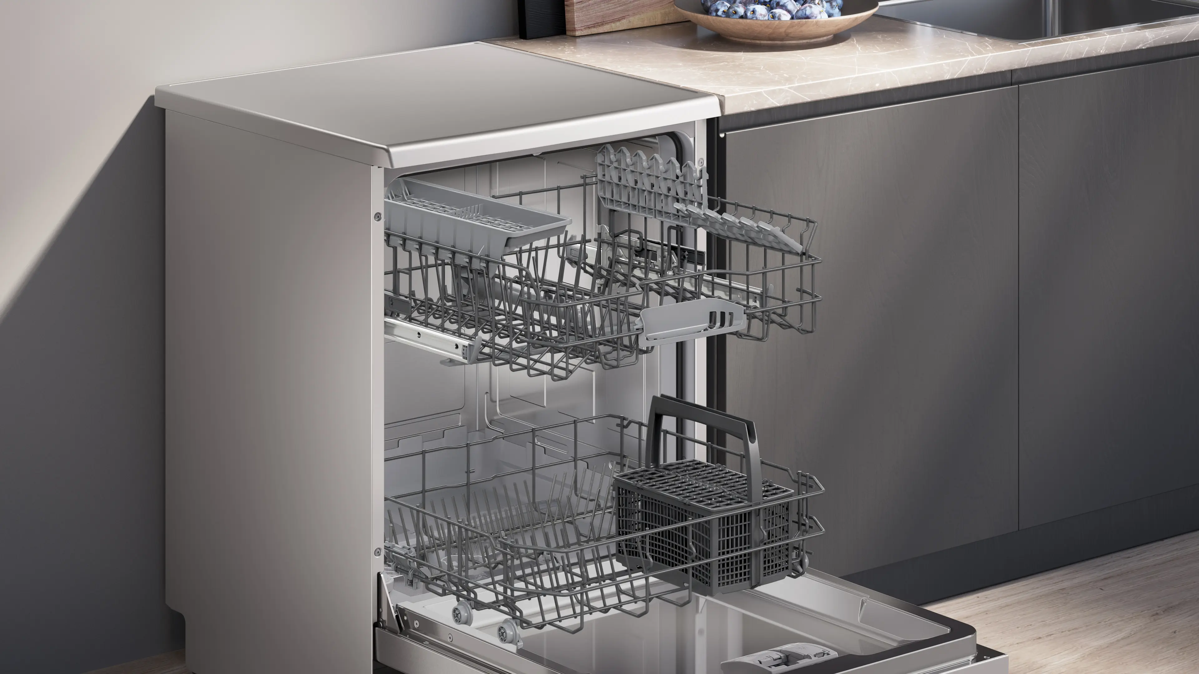 iQ100 free-standing dishwasher 60 cm Brushed steel anti-fingerprintSN216I00AM