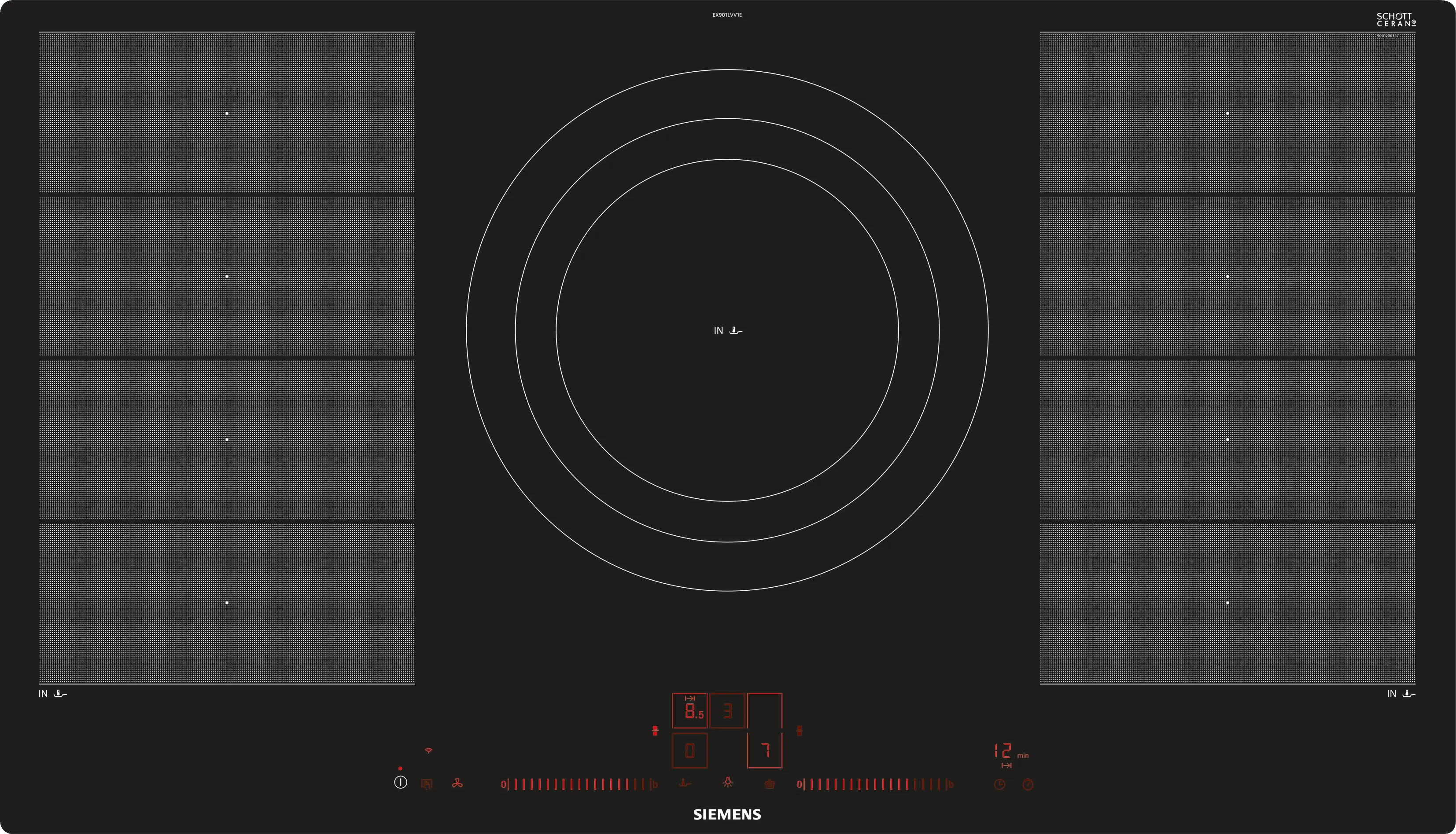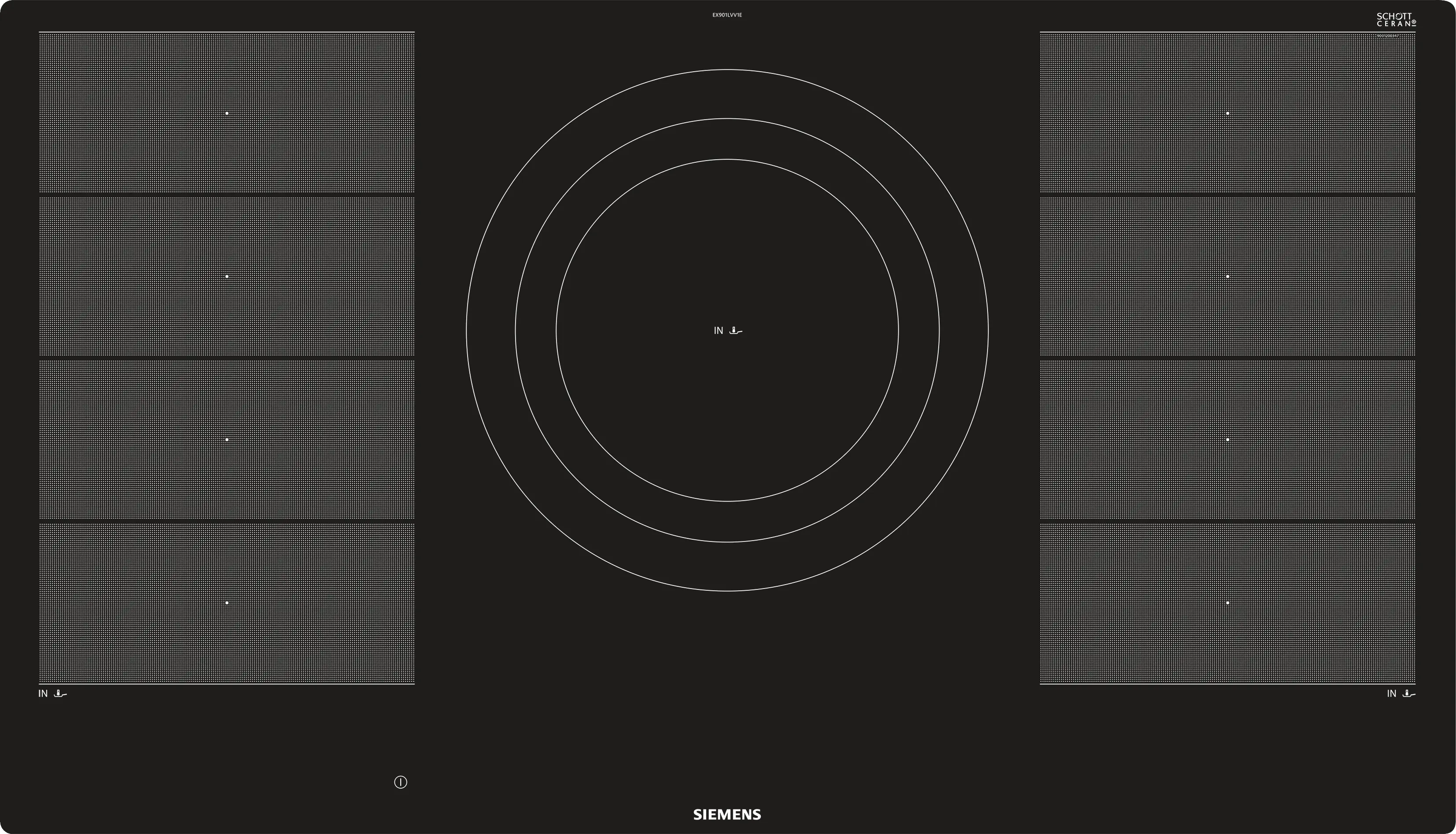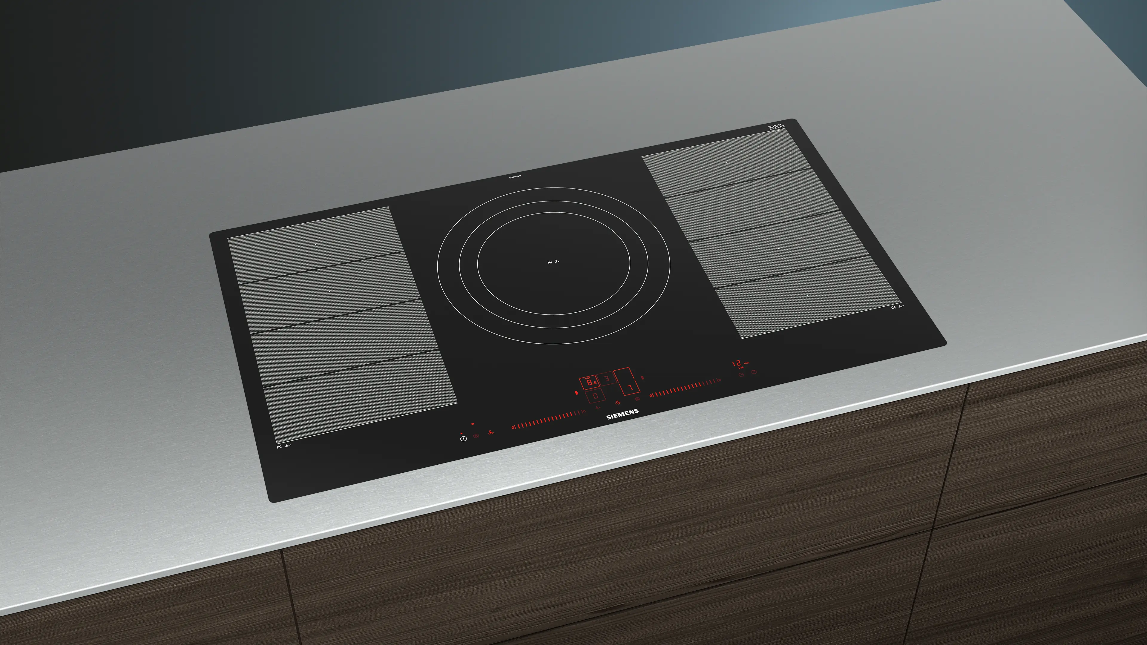 2 flexible Zonen für Kochgeschirr unterschiedlicher Form, Dreikreis-Zone
