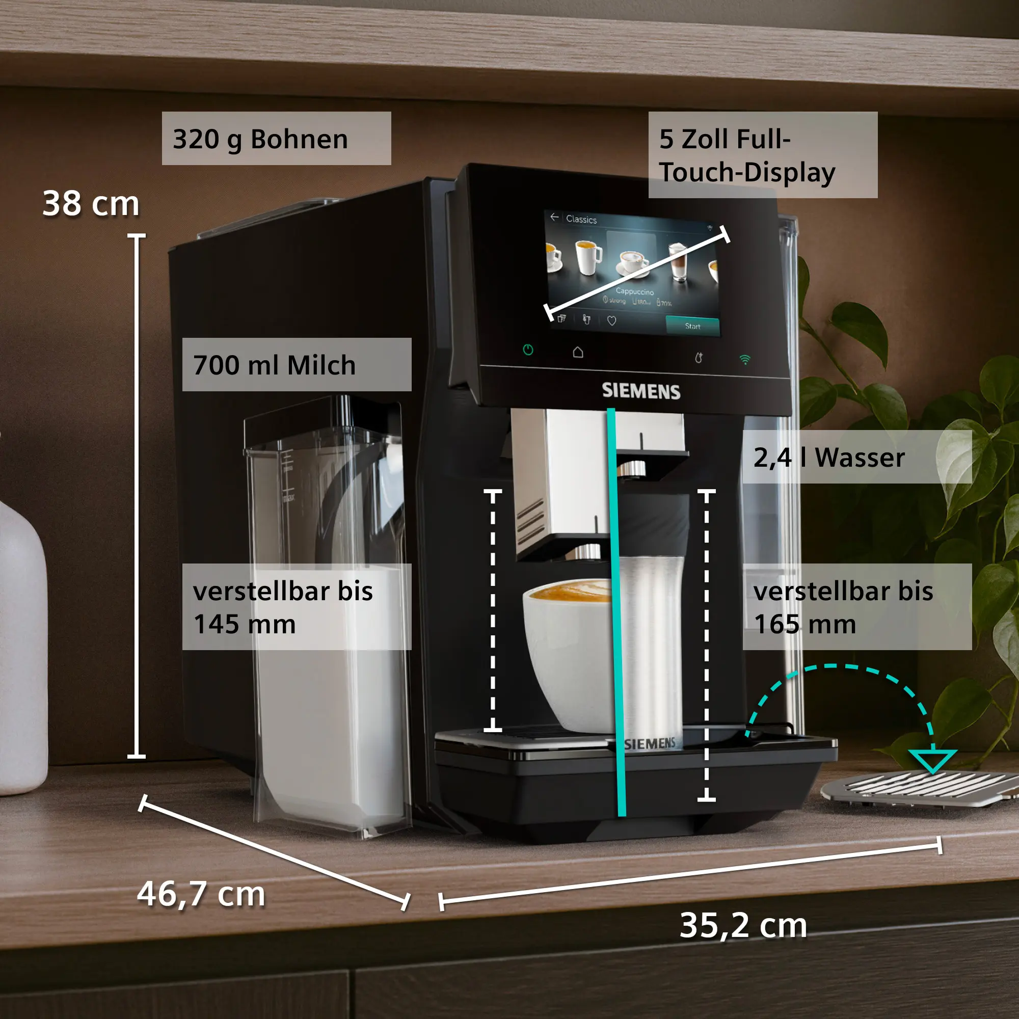 Füllmenge des Behälters für frische Kaffeebohnen