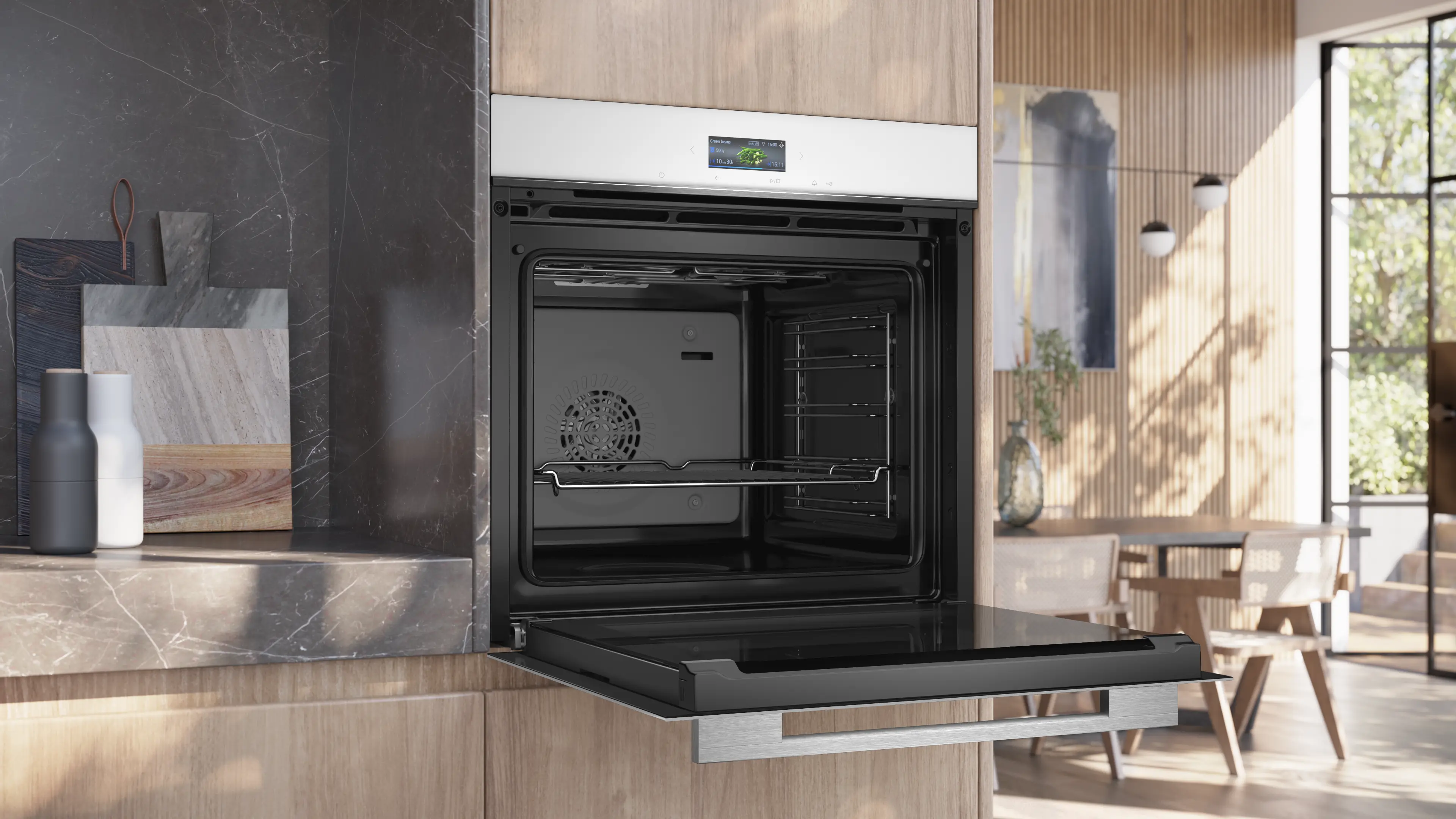 Vernetzte Hausgeräte mit Home Connect Fußnote 1: Wir stellen von Zeit zu Zeit funktionserhaltende Aktualisierungen (insbesondere Sicherheitsaktualisierungen) für vernetzte Hausgeräte bereit. Solche Updates sind von Smartphones bekannt. Um über die Verfügbarkeit eines solchen Updates für ein Home Connect-fähiges Gerät informiert zu werden, kann wie folgt vorgegangen werden: Home Connect App herunterladen. Gerät in der App registrieren und verbinden. In der Home Connect App stehen dann weitere Informationen bereit.,Fußnote 2: Einige der gezeigten Funktionen können nur genutzt werden, wenn das Gerät über das Internet mit einem Home Connect Account und einem Single-Key-ID-Account verbunden ist. Home Connect ist ein Service der Home Connect GmbH. Mehr Informationen zu Home Connect unter www.home-connect.com.