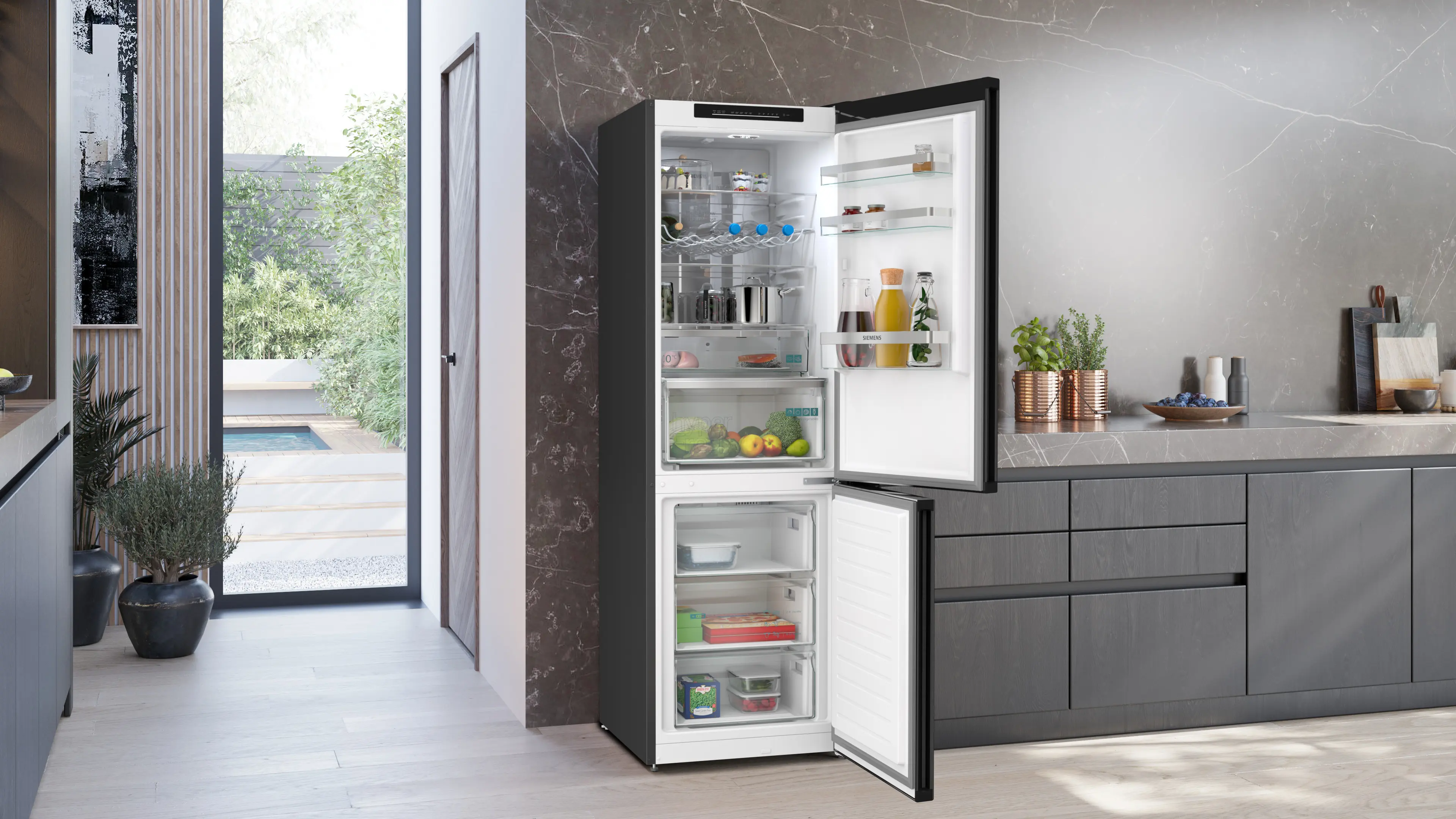 iQ300 Freistehende Kühl-Gefrier-Kombination mit Gefrierbereich unten 186 x 60 cm Gebürsteter schwarzer Stahl AntiFingerprintKG36NVXBG