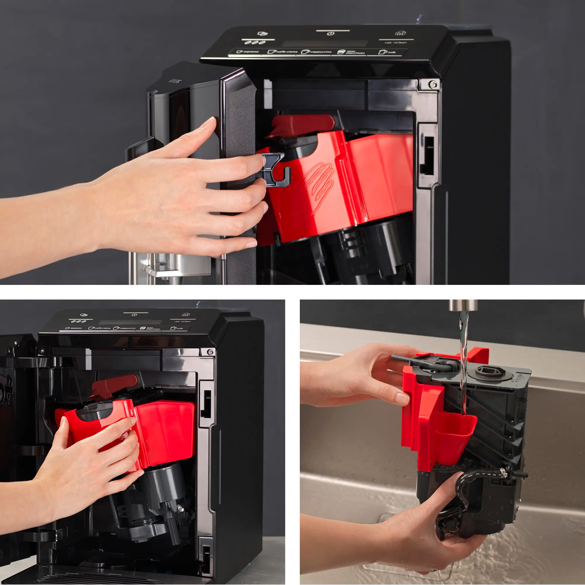Liste de boissons lactées pouvant être obtenues en appuyant sur un bouton sans déplacer la tasse
