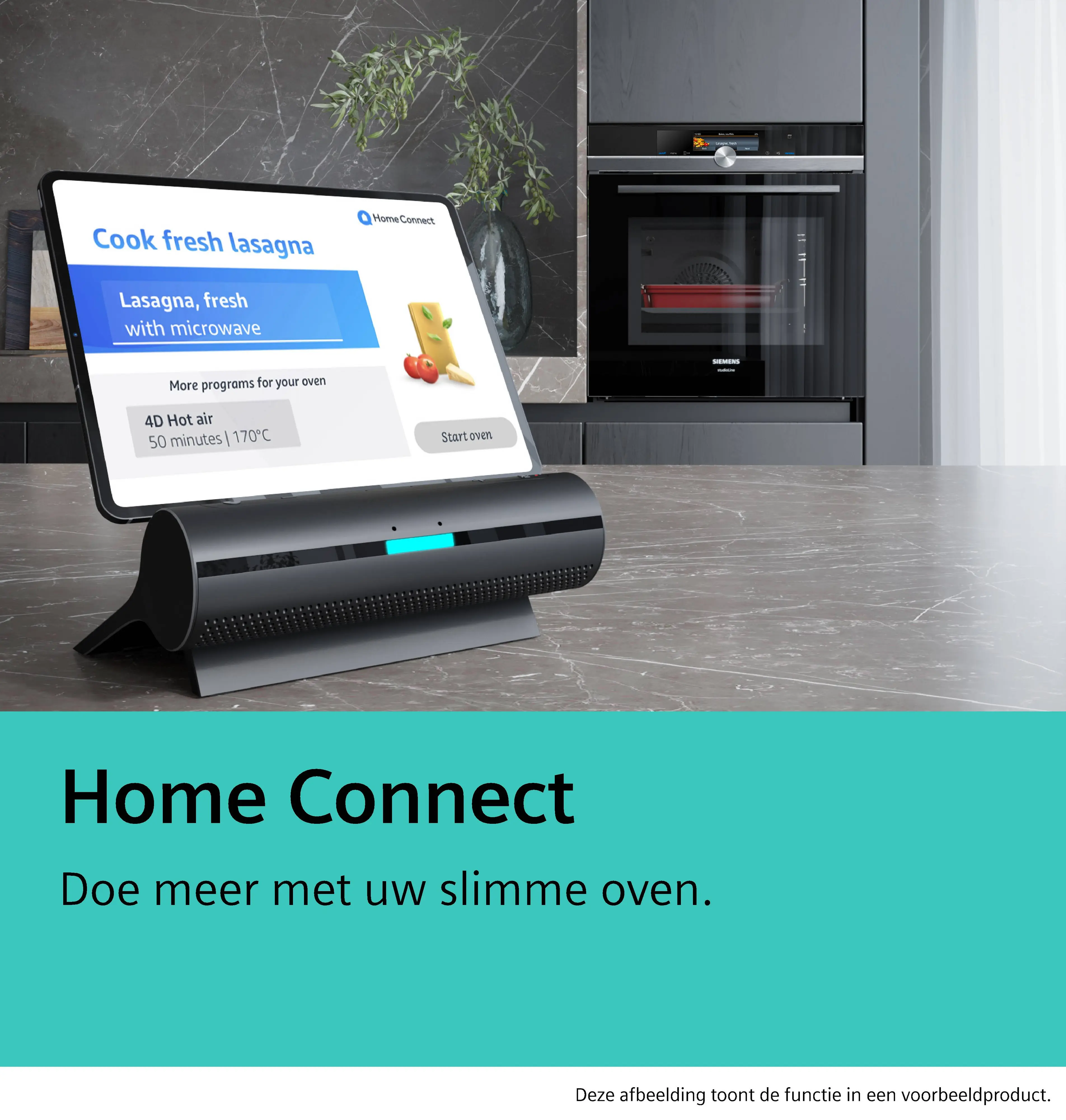 Home Connect Voetnoot 1: Wij bieden regelmatig updates om de functionaliteiten van je verbonden huishoudtoestel te verbeteren (vooral beveiligingsupdates). Je kent dergelijke updates al van je smartphone. Wil je een melding ontvangen als een dergelijke update beschikbaar is voor je Home Connect-toestel? Ga dan als volgt te werk: Download de Home Connect-app. Maak een account aan en verbind het toestel in de app. Meer informatie krijg je dan in de app.,Voetnoot 2: Sommige van de weergegeven functies kunnen alleen worden geopend als het toestel verbonden is met een Home Connect-account en een SingleKey ID-account via internet. Home Connect is een dienst van Home Connect GmbH. Voor meer informatie over Home Connect, bezoek www.home-connect.com.