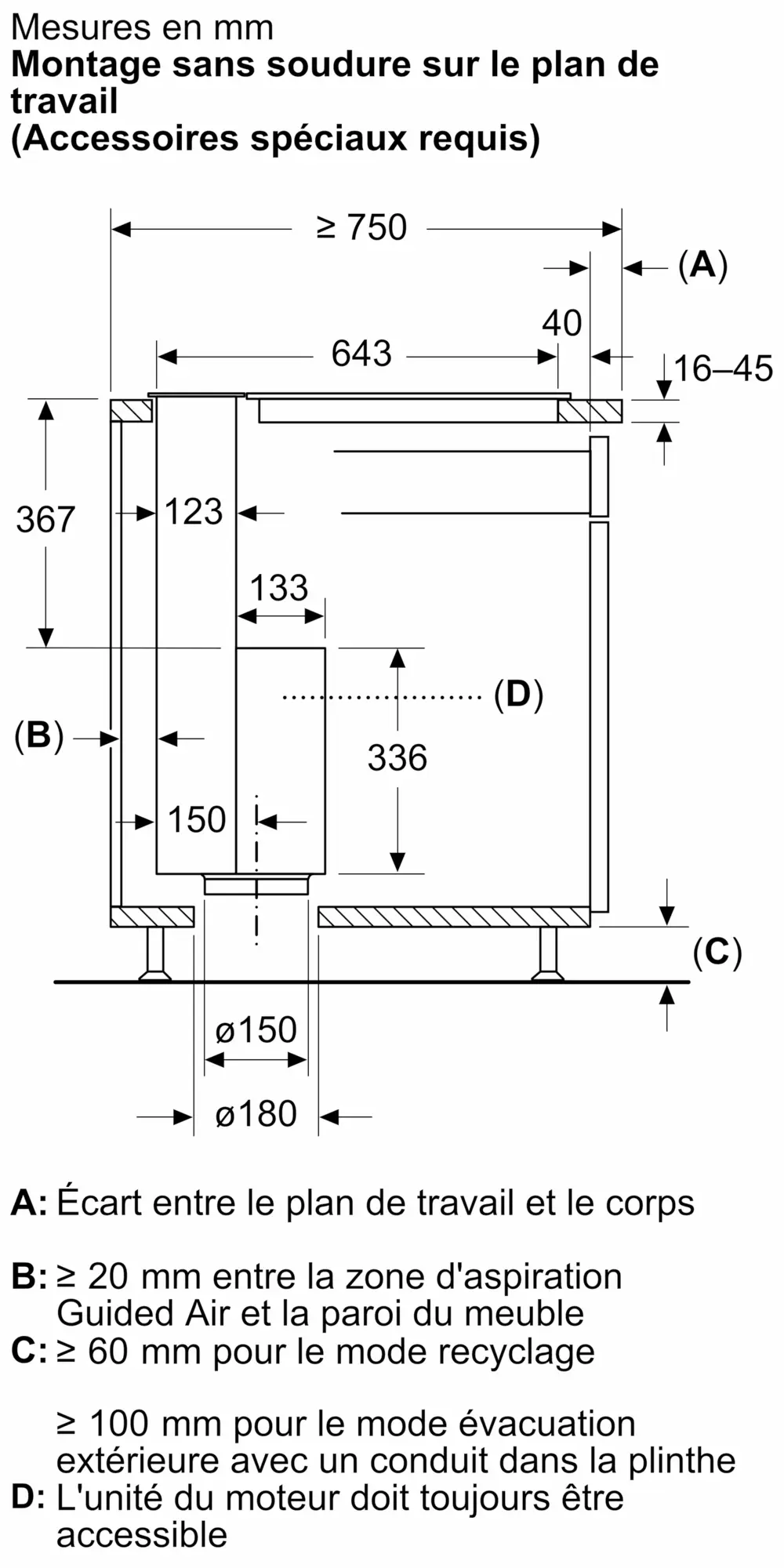 Débit maximum d'aspiration d'air en évacuation