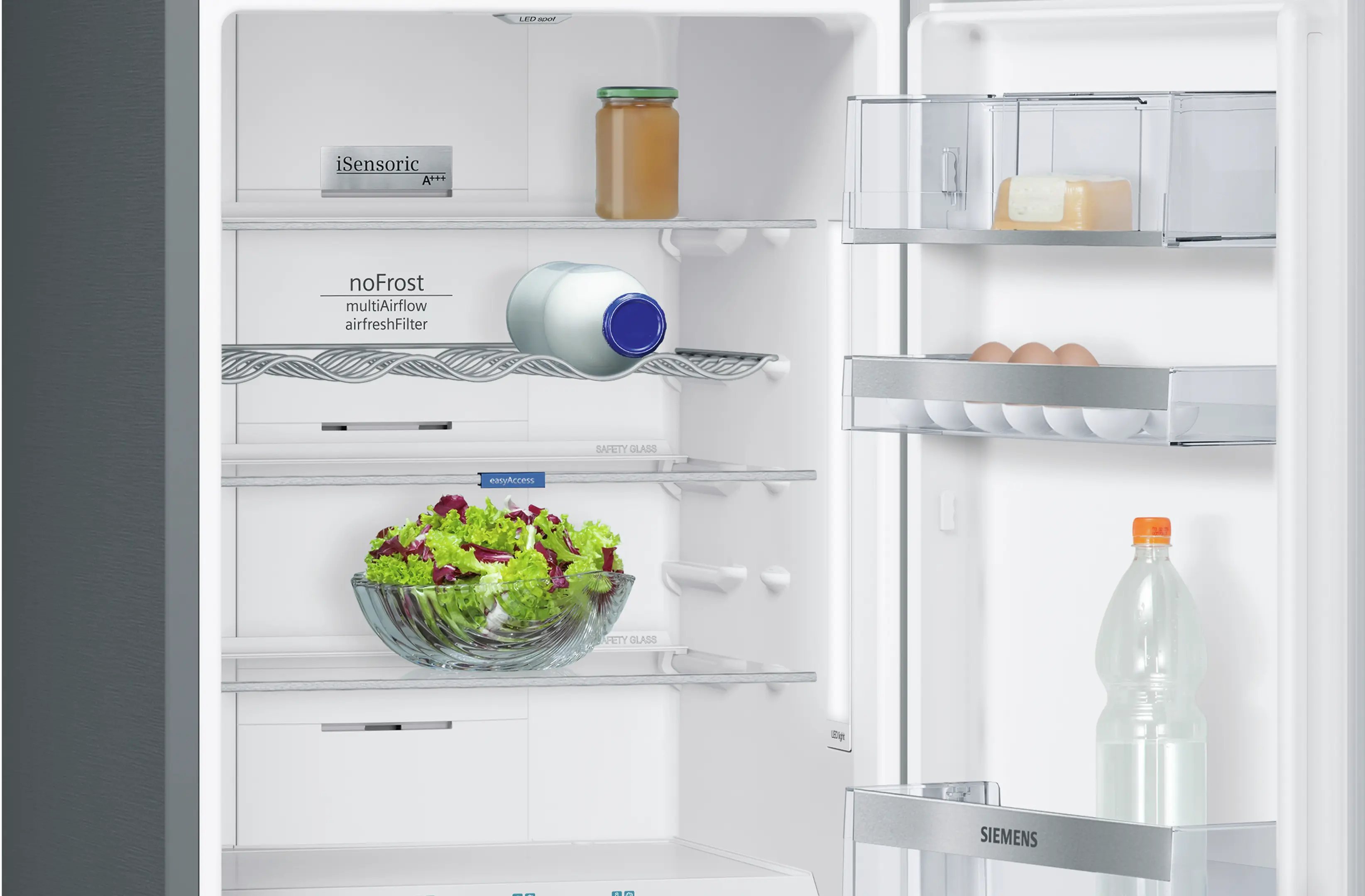 Čerstvost kam se jen podíváš: prémiové LED osvětlení s horním a bočním světlem osvětlí každý kout vaší chladničky.