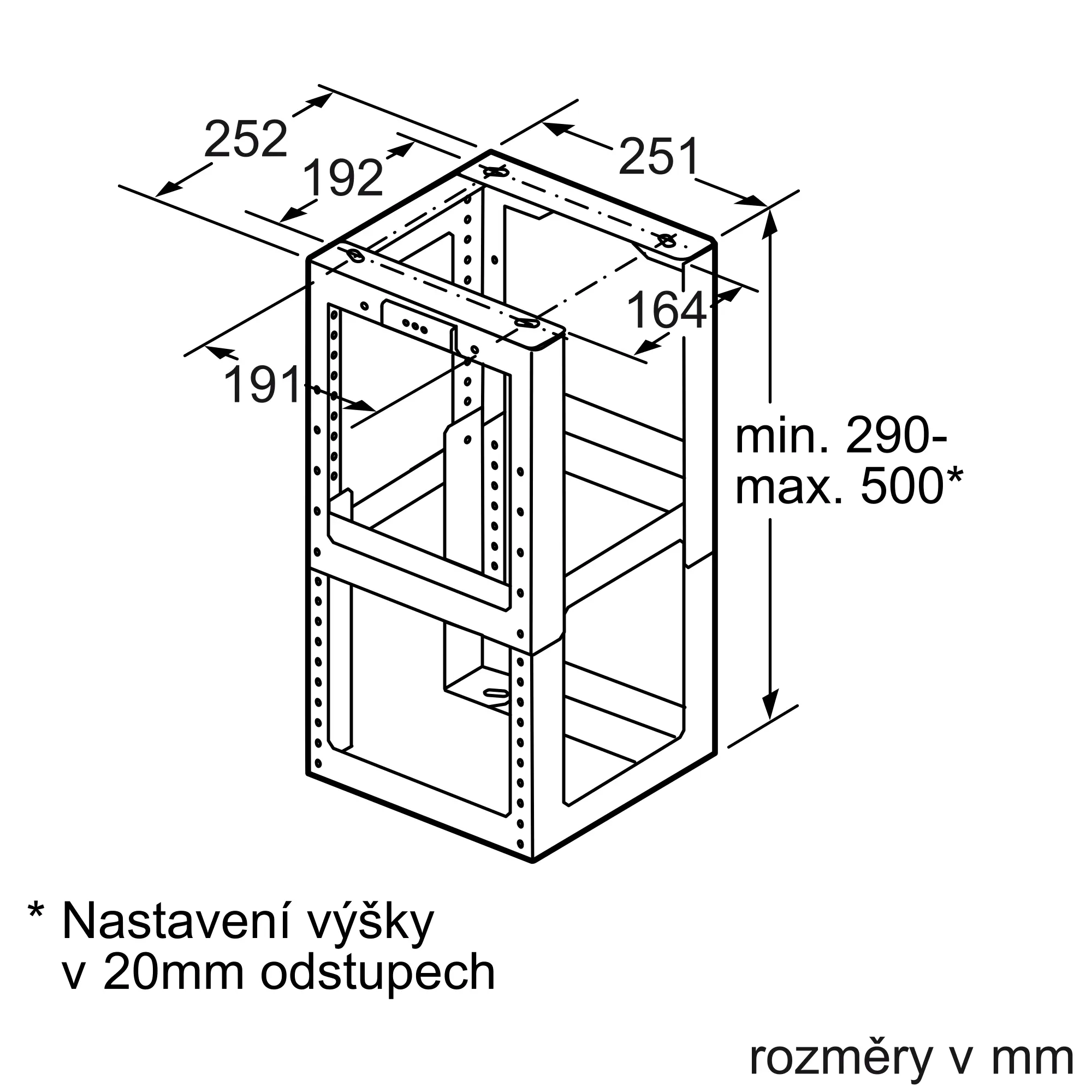 určeno pro výšku komínu od 1100 do 1500 mm, celková výška spotřebiče je závislá na konstrukci (výšce korpusu)