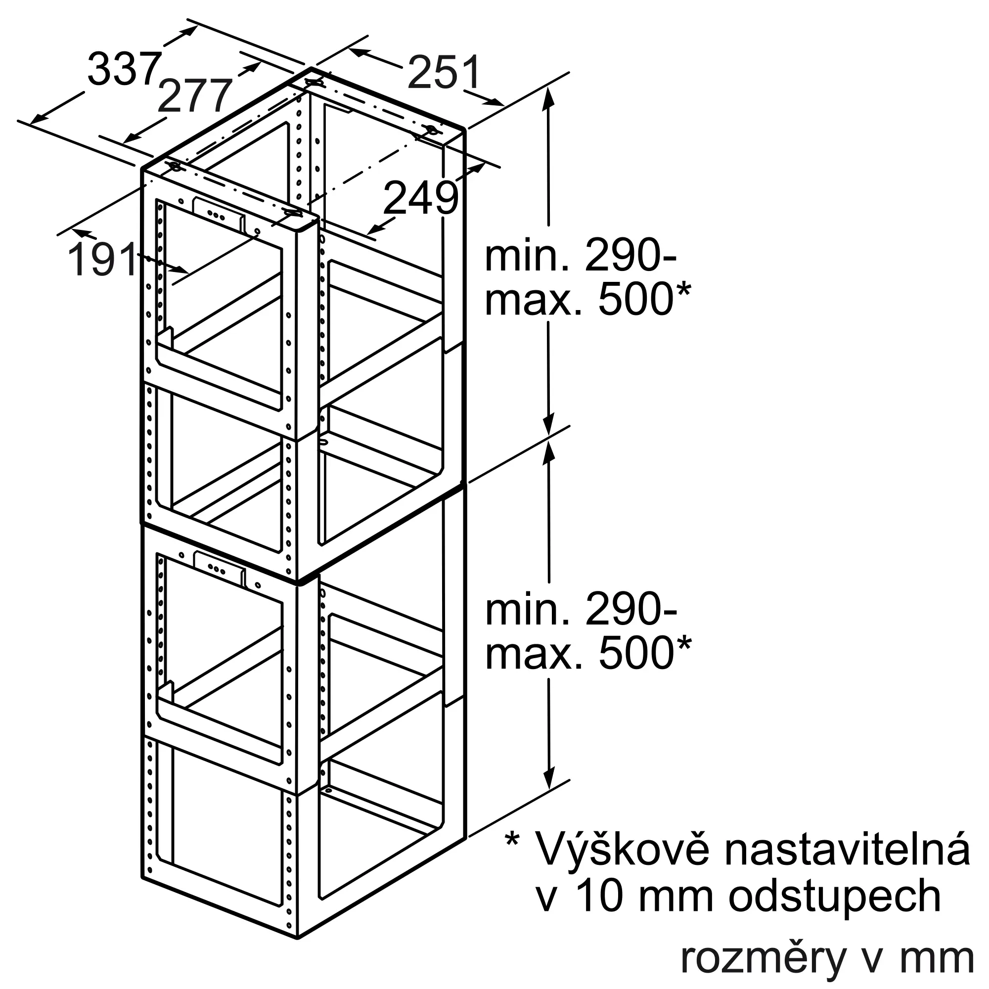 Pro výšku komínu od 1600 mm do 2000 mm. Celková výška spotřebiče je závislá na konstrukci (výšce korpusu).