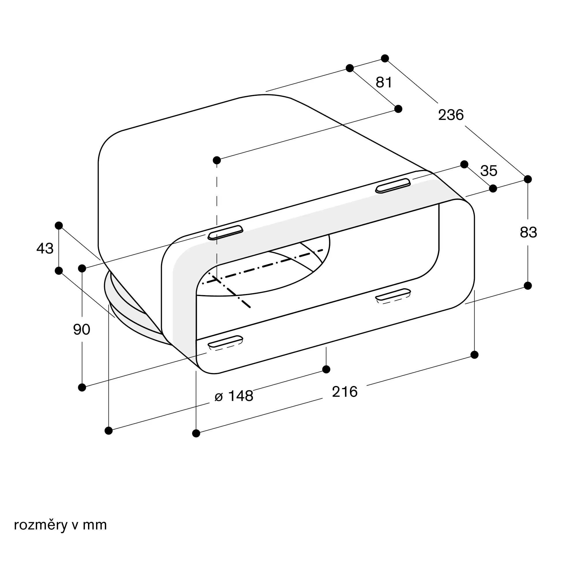 kolenová redukce plochá/kulatá, 90 ° pro spotřebiče s vertikálním kulatým výstupem vzduchu (např. zápustný odsavač par, komínové odsavače par)