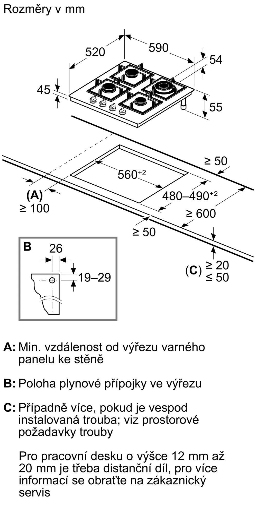 zápustná instalace nebo instalace na pracovní desku