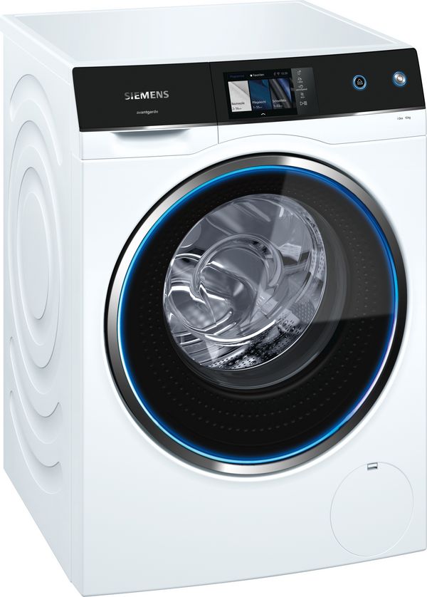 Nové spotřebiče Siemens upoutají pozornost moderním designem s černobílým zkoseným ovládacím panelem, který zaručuje pohodlnou obsluhu a snadný přístup ke všem informacím. Barevný 5“ TFT dotykový displej má stejnou logiku ovládání jako chytré mobilní telefony. Nastavení je možné jednoduše změnit jediným dotykem. Na displeji lze vybrat jeden z mnoha světových jazyků včetně češtiny a slovenštiny. Dalším charakteristickým designovým prvkem jsou modře podsvícená dvířka zapuštěná do přední části spotřebiče tak, že při zavření vůbec nevystupují do prostoru. Modře podsvícený prstenec okolo dvířek a nastavitelný způsob svícení na první pohled informují o stavu programu. Dvířka mají elektromagnetický zámek a otevírají se pomocí tlačítka na ovládacím panelu. Nejen vnější design, ale i vnitřní výbava obou spotřebičů je na té nejvyšší úrovni.