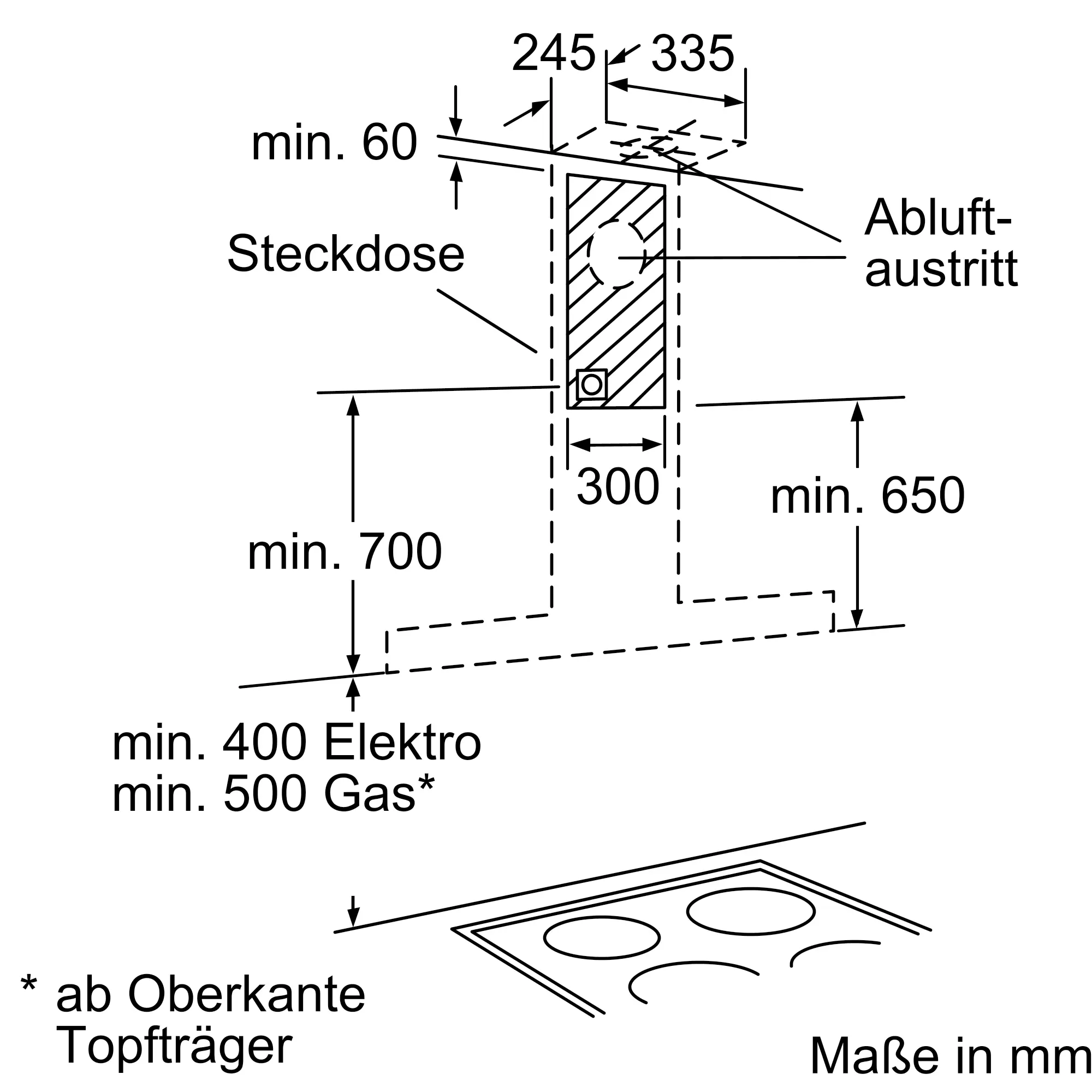 Abluft, Umluft (Sonderzubehör separat erhältlich)