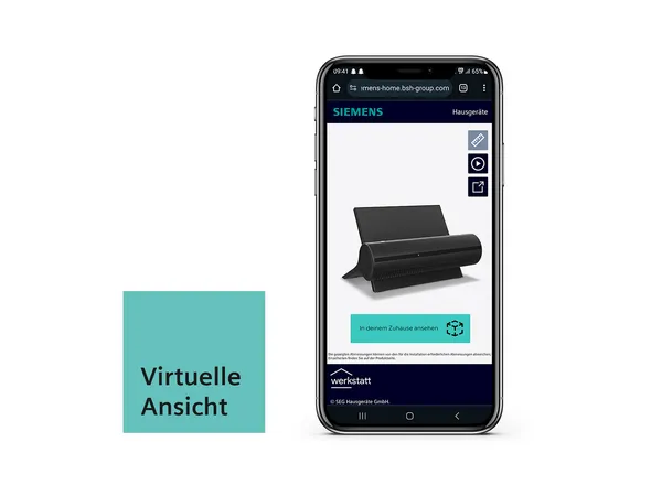 Virtuelle ProduktansichtErlebe das Produkt in 3D Visualisierung. Die Funktion der virtuellen Ansicht ermöglicht es dir das Produkt inklusive Produktmaße im Detail zu betrachten. Zudem kannst du per Smartphone das Hausgerät direkt in deinem Zuhause sehen.Zur virtuellen Ansicht