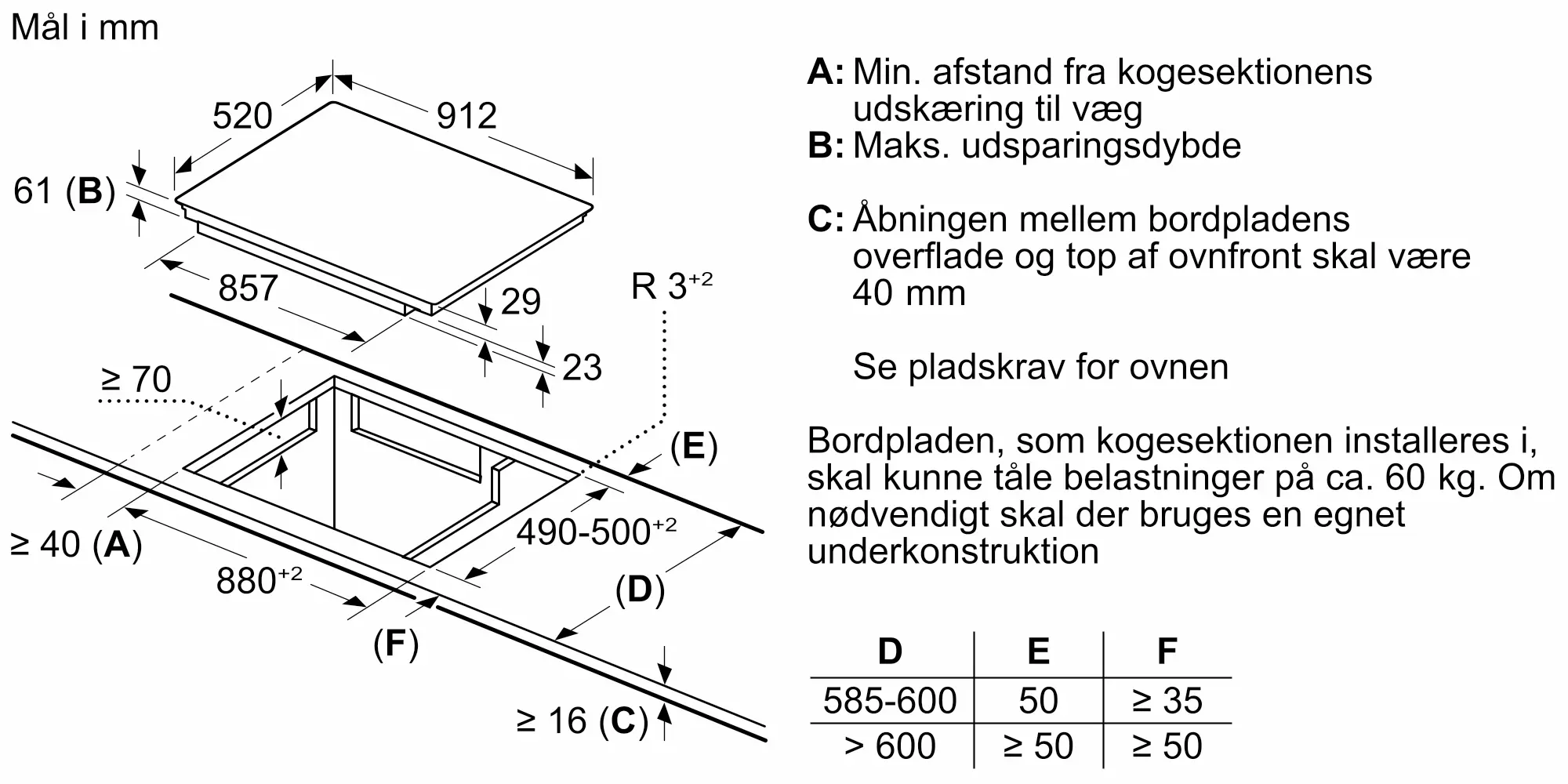 61x912x520 mm