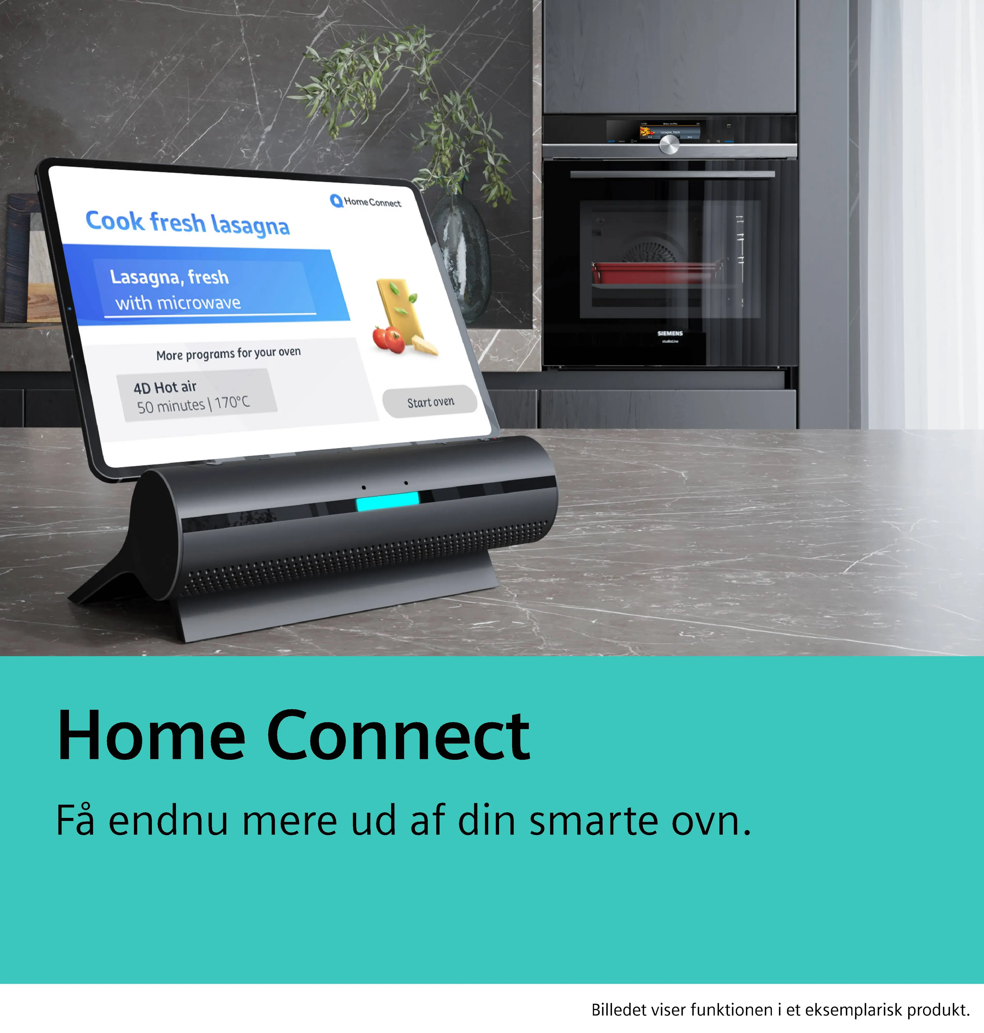 Home Connect - Wi-Fi tilslutningFodnote 1: Fra tid til anden leverer vi opdateringer for at bevare funktionerne i dit tilkoblet husholdningsapparat (især sikkerhedsopdateringer). Sådanne opdateringer kender du fra din smartphone. Hvis du ønsker at blive informeret, når en sådan opdatering er klar til dit Home Connect-aktiverede apparat, skal du fortsætte som følger: - Download Home Connect-appen.- Registrer og tilslut apparatet i appen. - Mere information vil derefter være tilgængelig i Home Connect-appen.,Fodnote 2: Nogle af de viste funktioner kan kun tilgås, hvis enheden er tilsluttet en Home Connect-konto og en SingleKey ID-konto via internettet. Home Connect er en tjeneste fra Home Connect GmbH. For mere information om Home Connect, besøg www.home-connect.com.