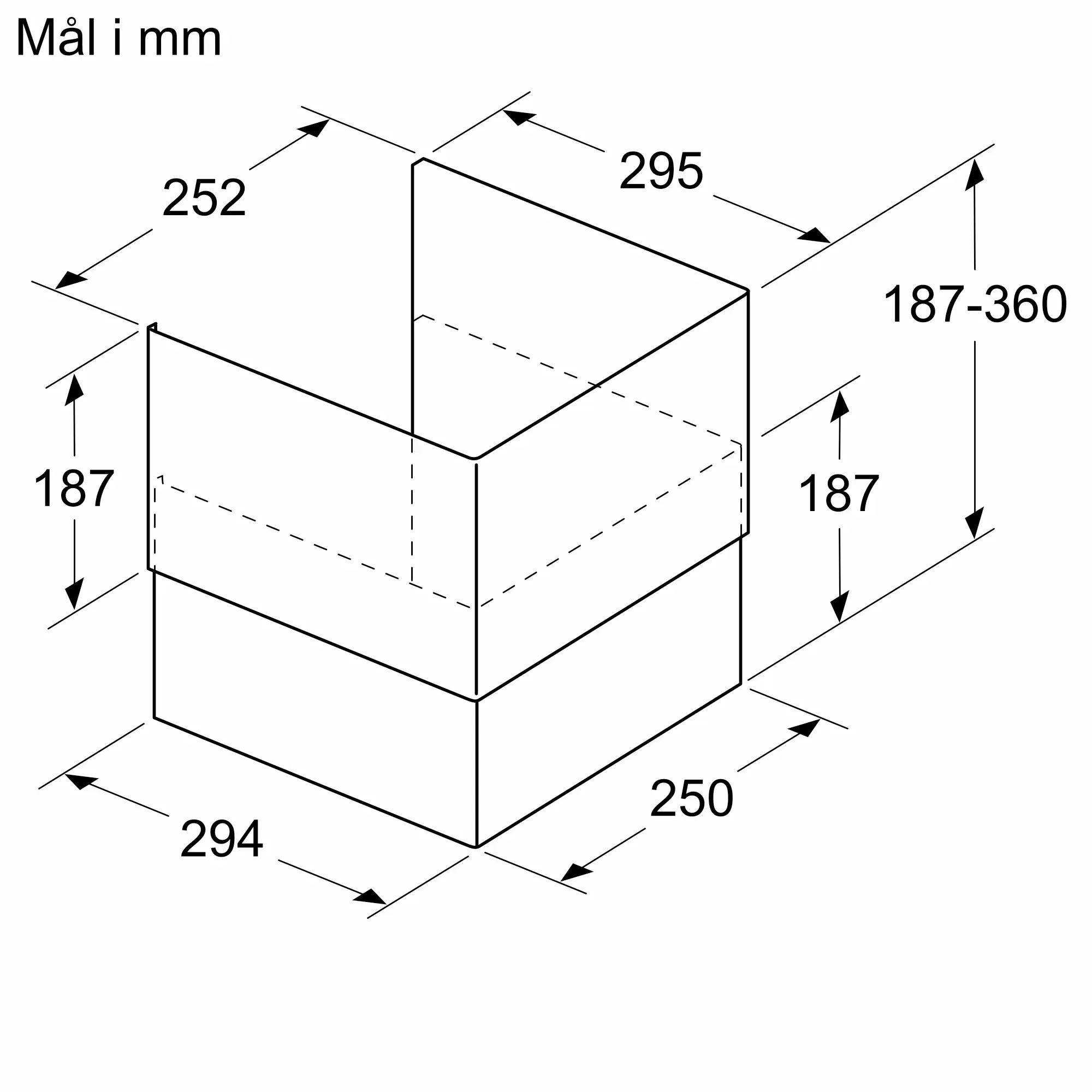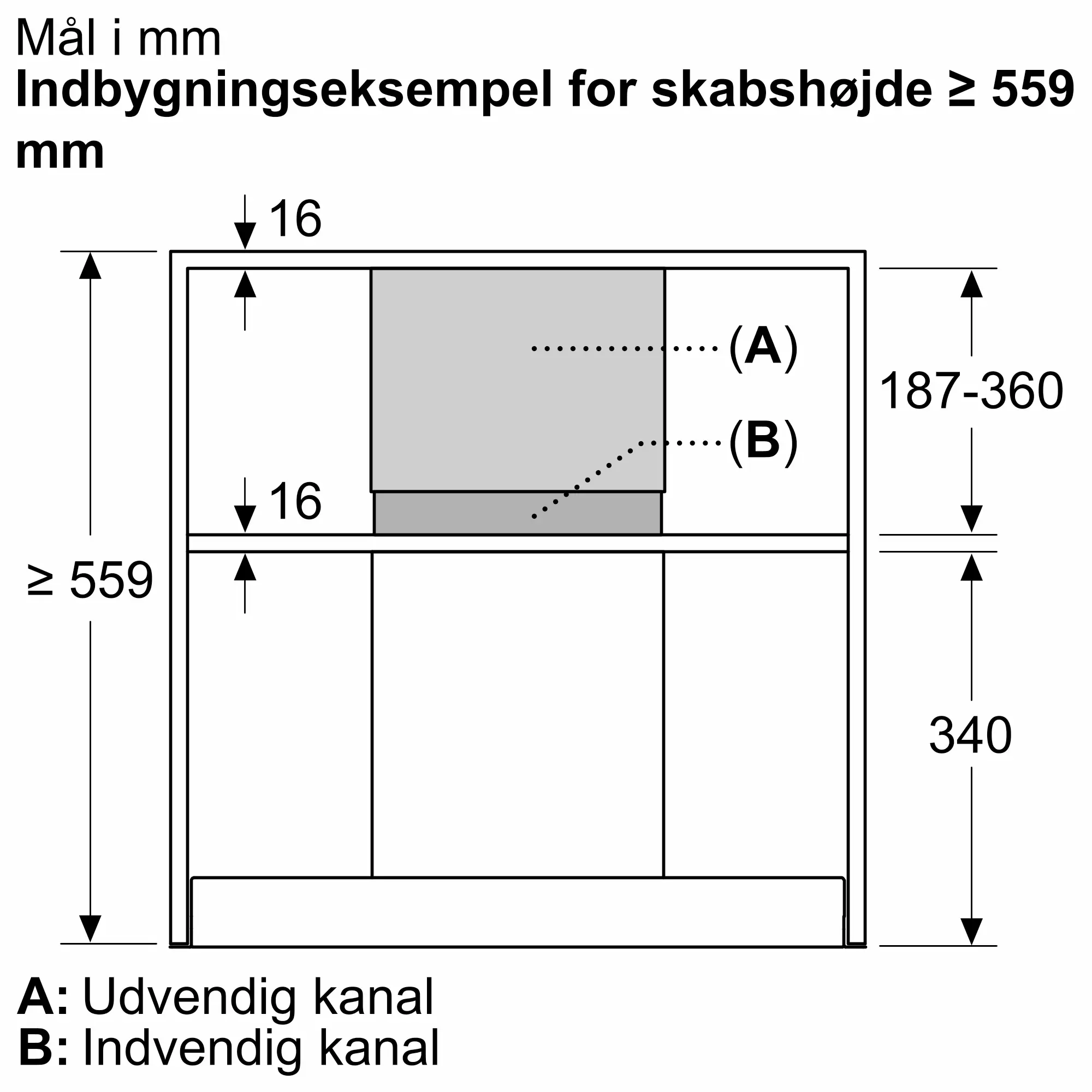 Forlænger til luftkanal (187-360 mm) til integrede emhætter.