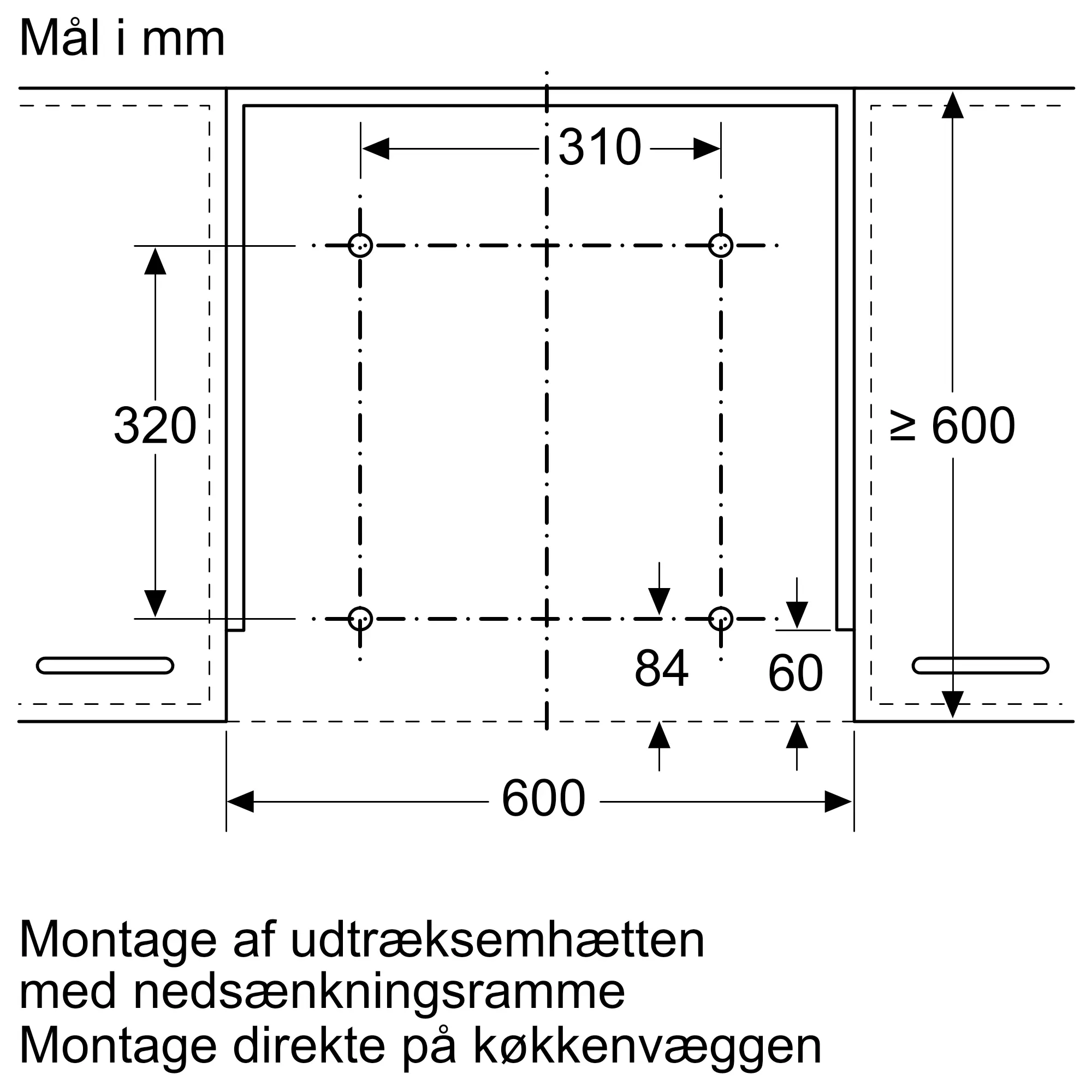 Til montering direkte på væggen
