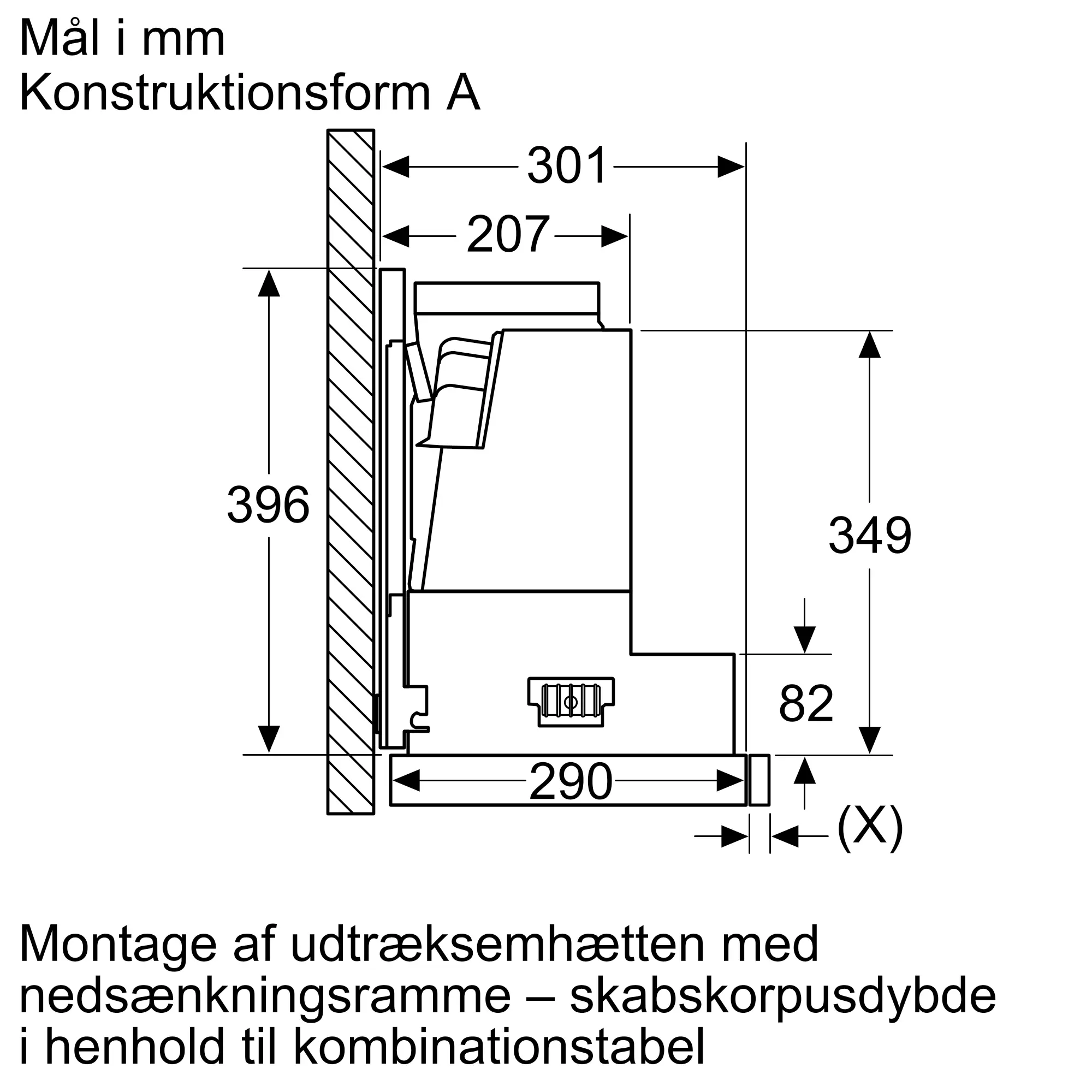 Med nedsænkningsrammen kan emhætten gemmes helt væk i overskabet