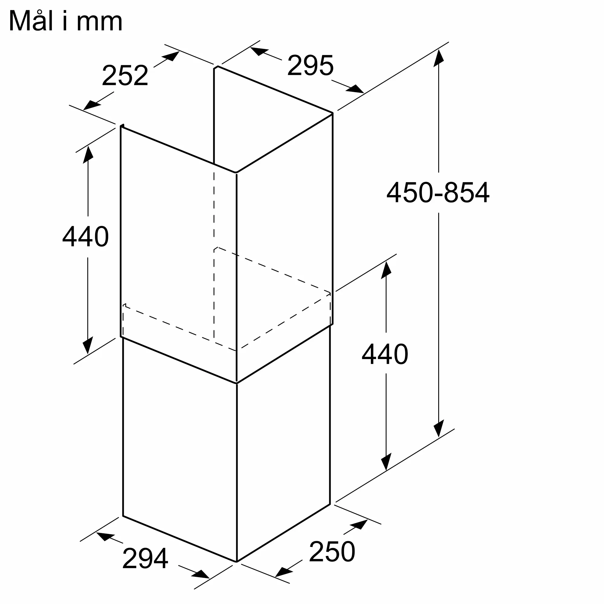 Skorstensforlænger 450-854 mm til integreret designemhætte.