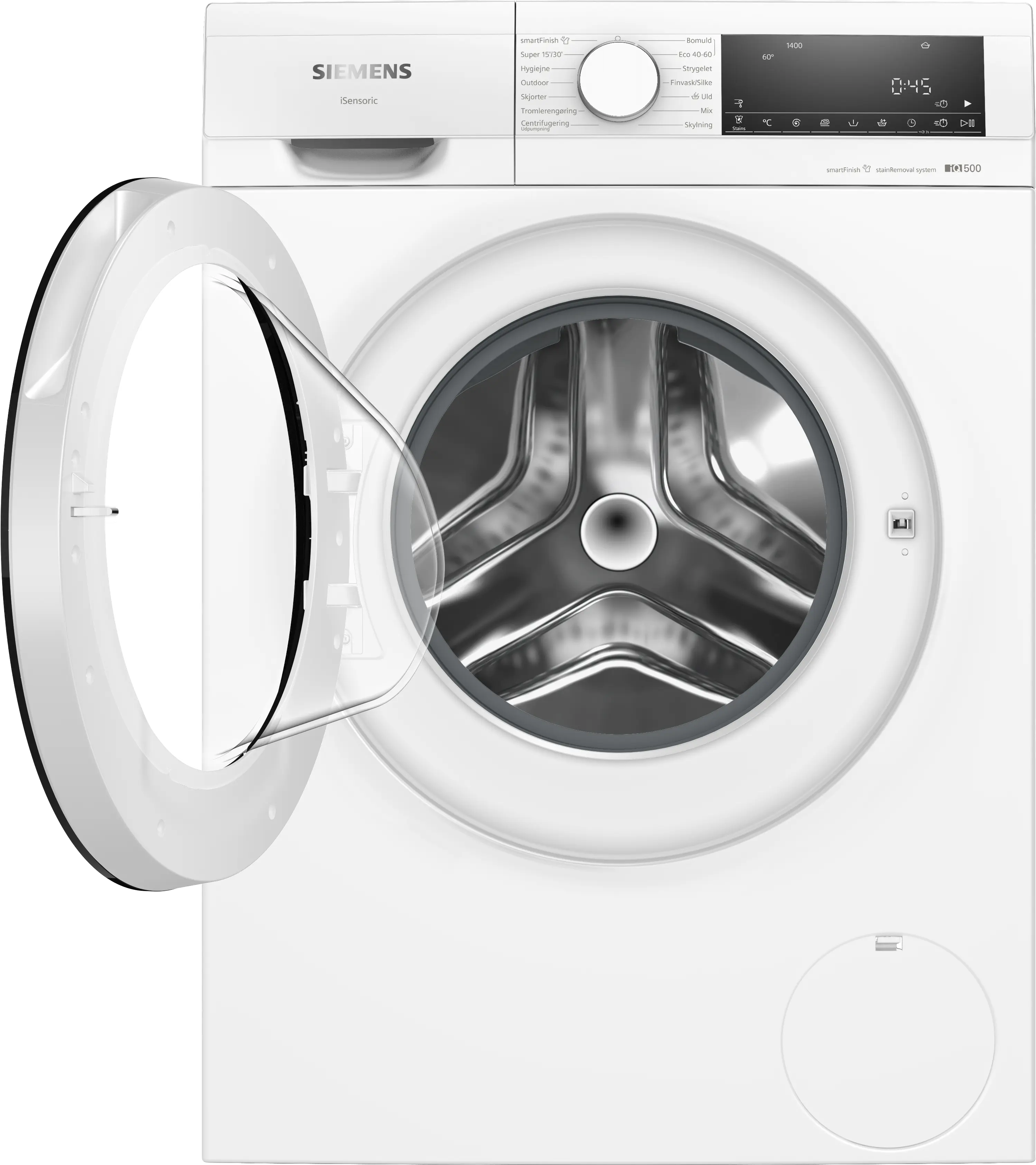 Højeste centrifugeringshastighedFodnote 1: Den maksimale centrifugeringshastighed reduceres automatisk i tilfælde af vaskeforstyrrelser.: 1400 omdr./min.
