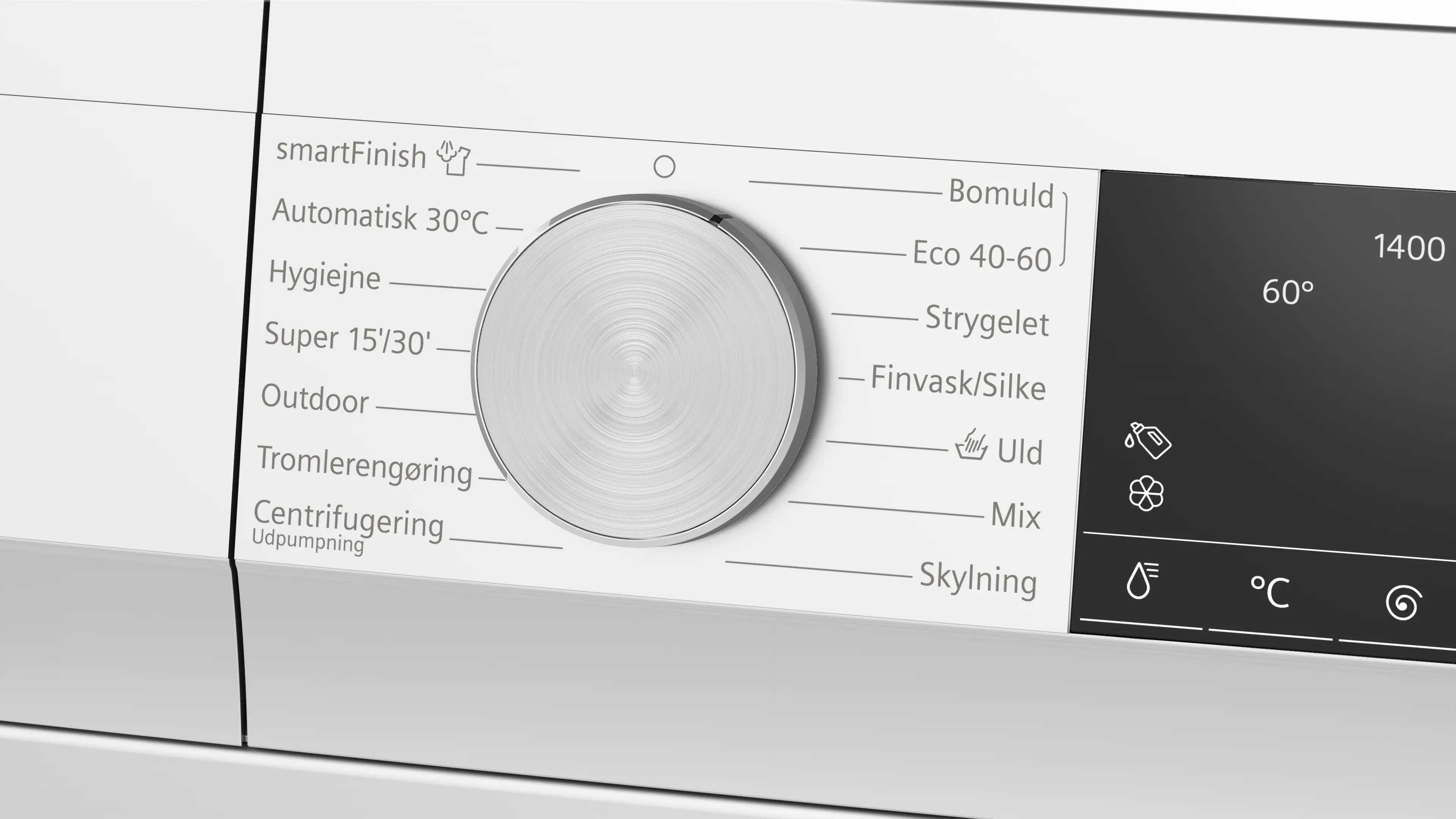 Højeste centrifugeringshastighedFodnote 1: Den maksimale centrifugeringshastighed reduceres automatisk i tilfælde af vaskeforstyrrelser.: 1400 omdr./min.