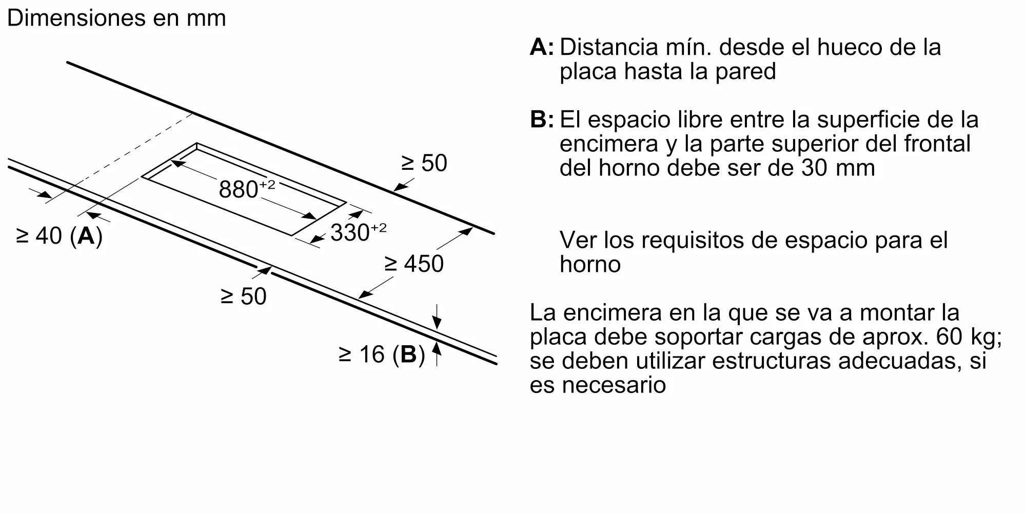 Dimensiones de instalación necesarias (H x W x D)