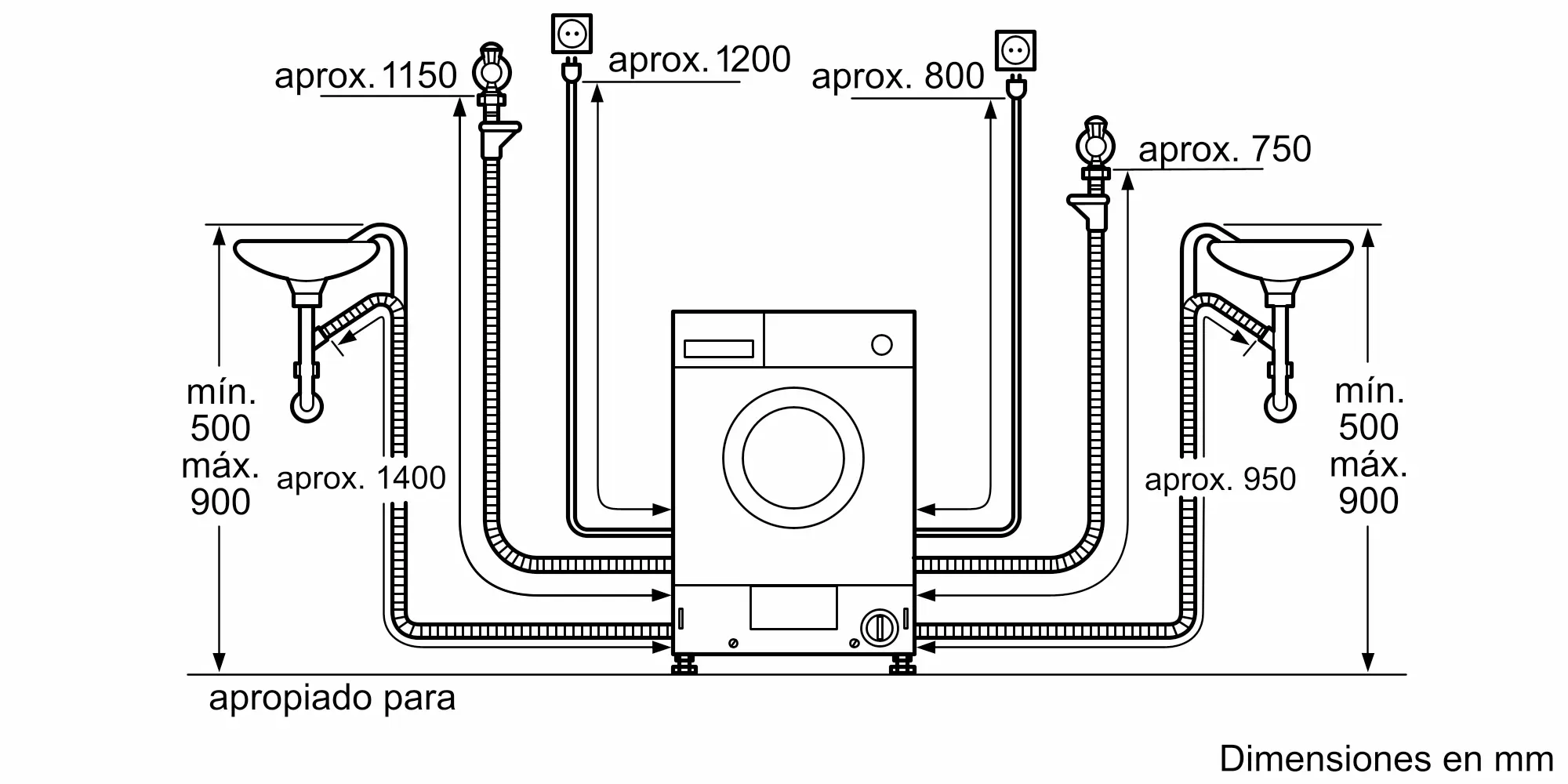 Dimensiones del aparato: alto x ancho x fondo (sin puerta)