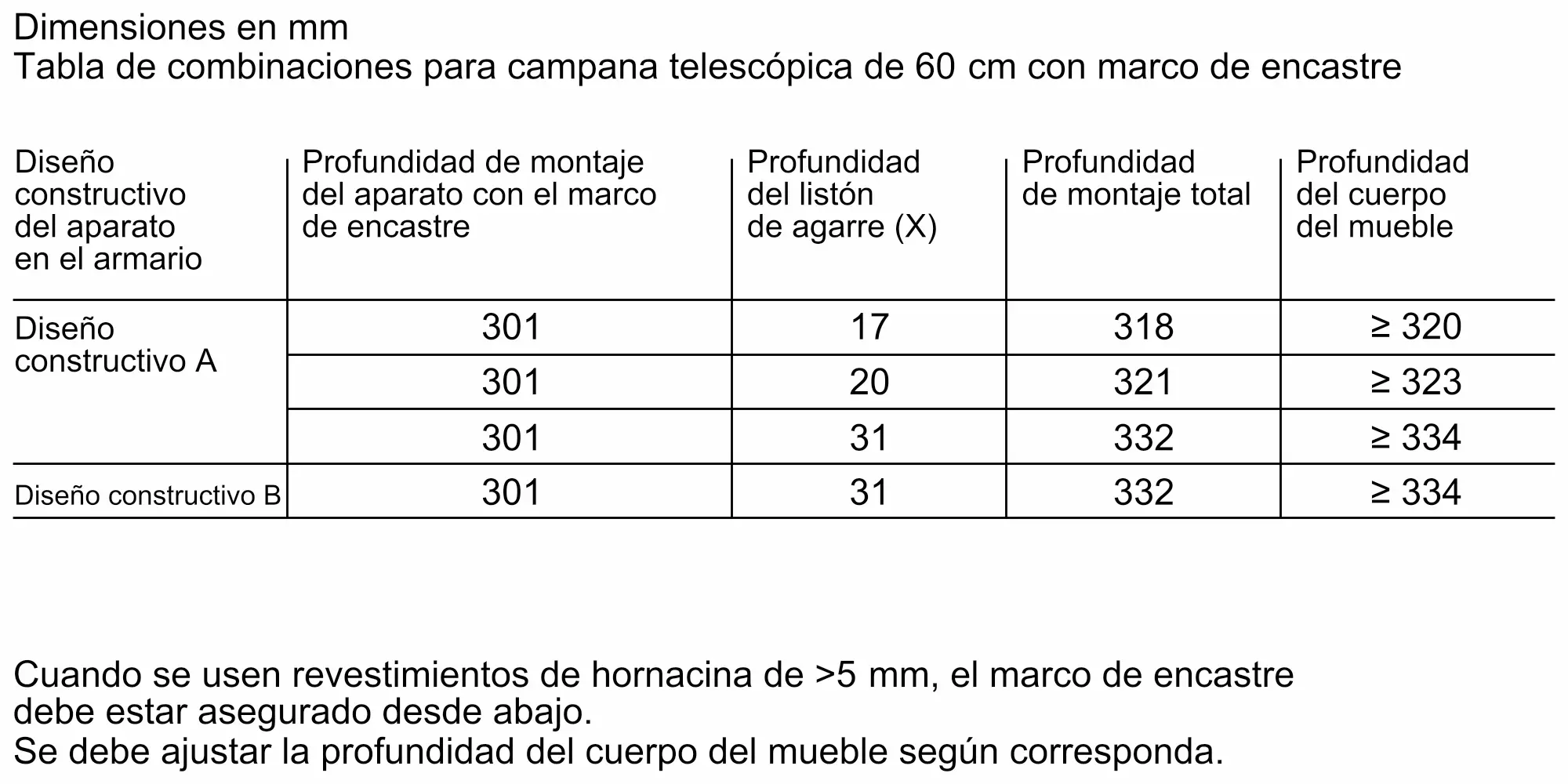 Para campanas telescópicas