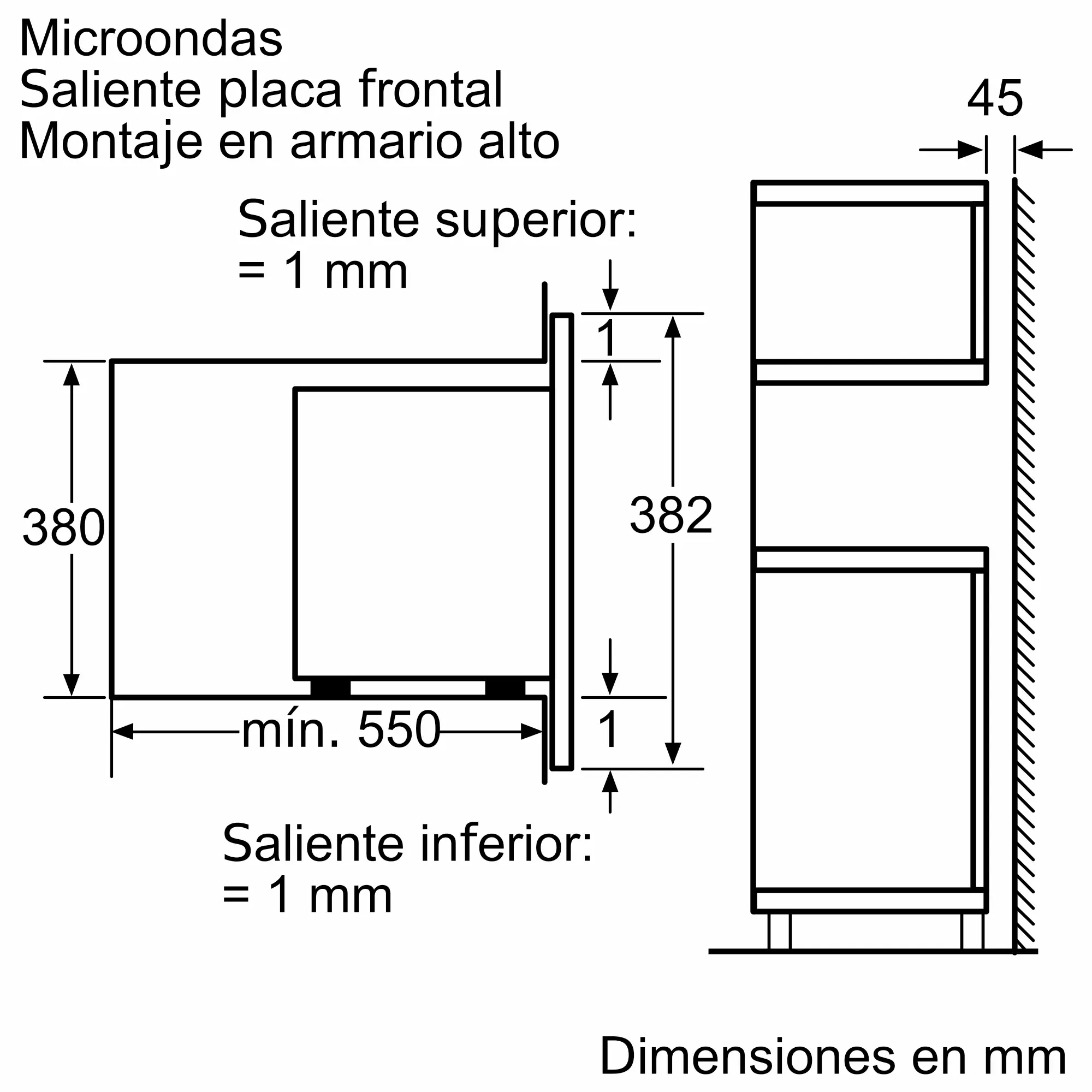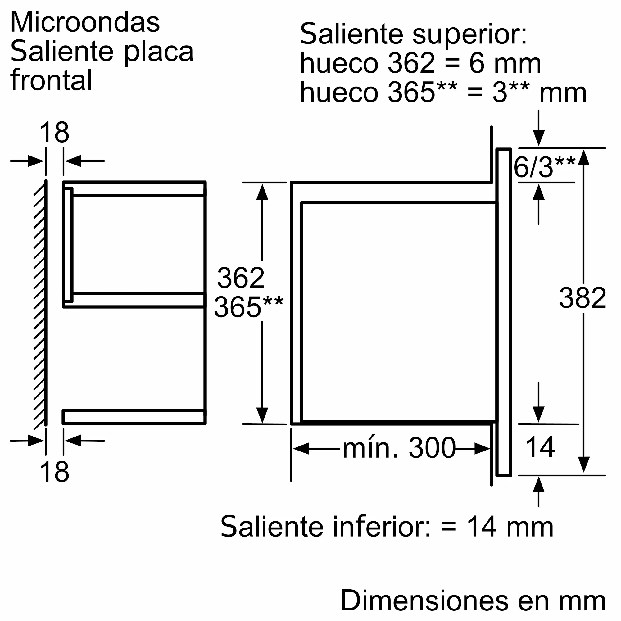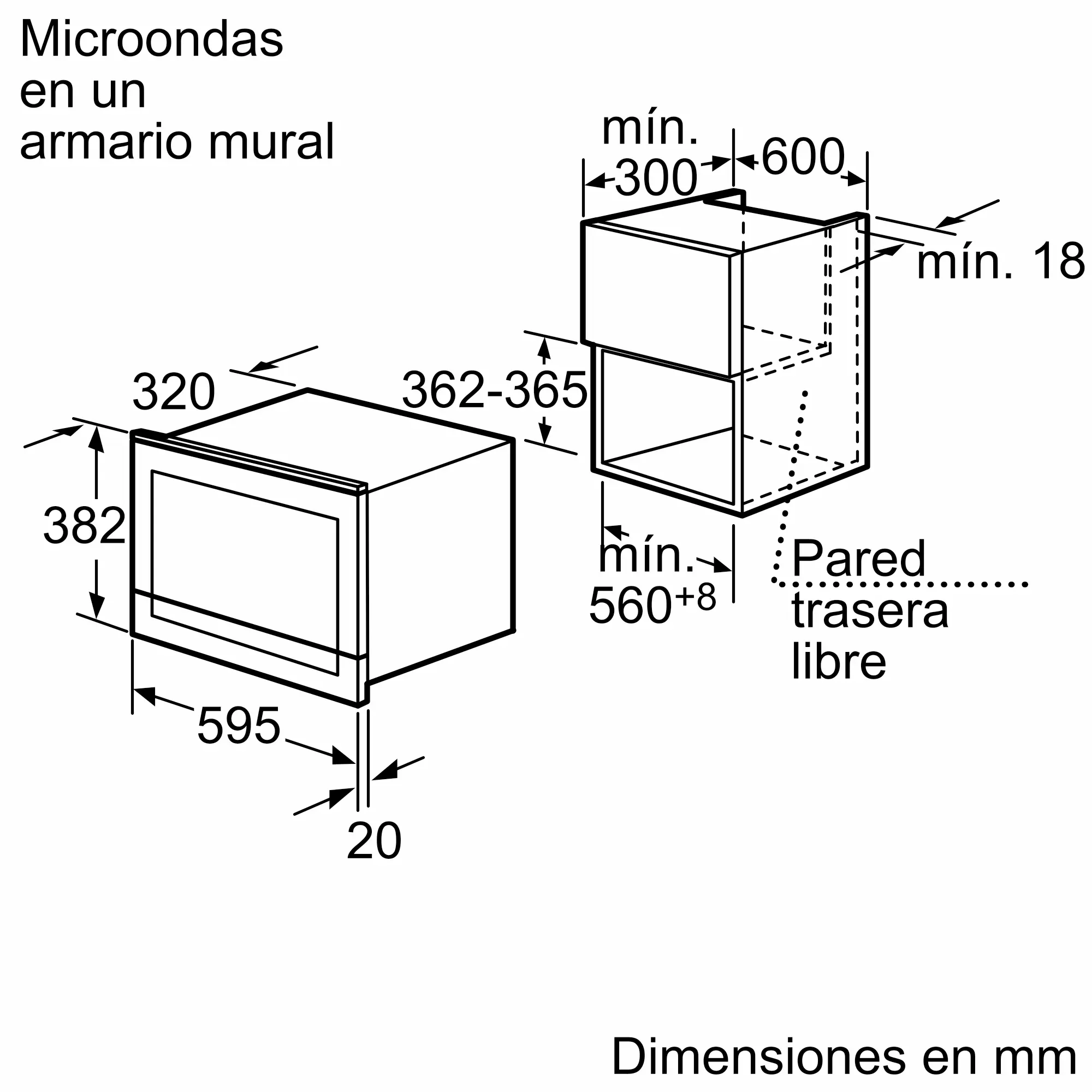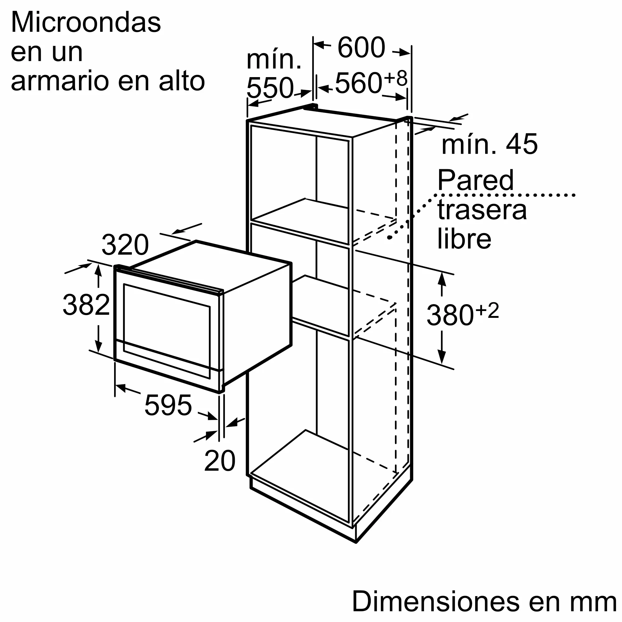 Dimensiones de instalación necesarias (H x W x D)