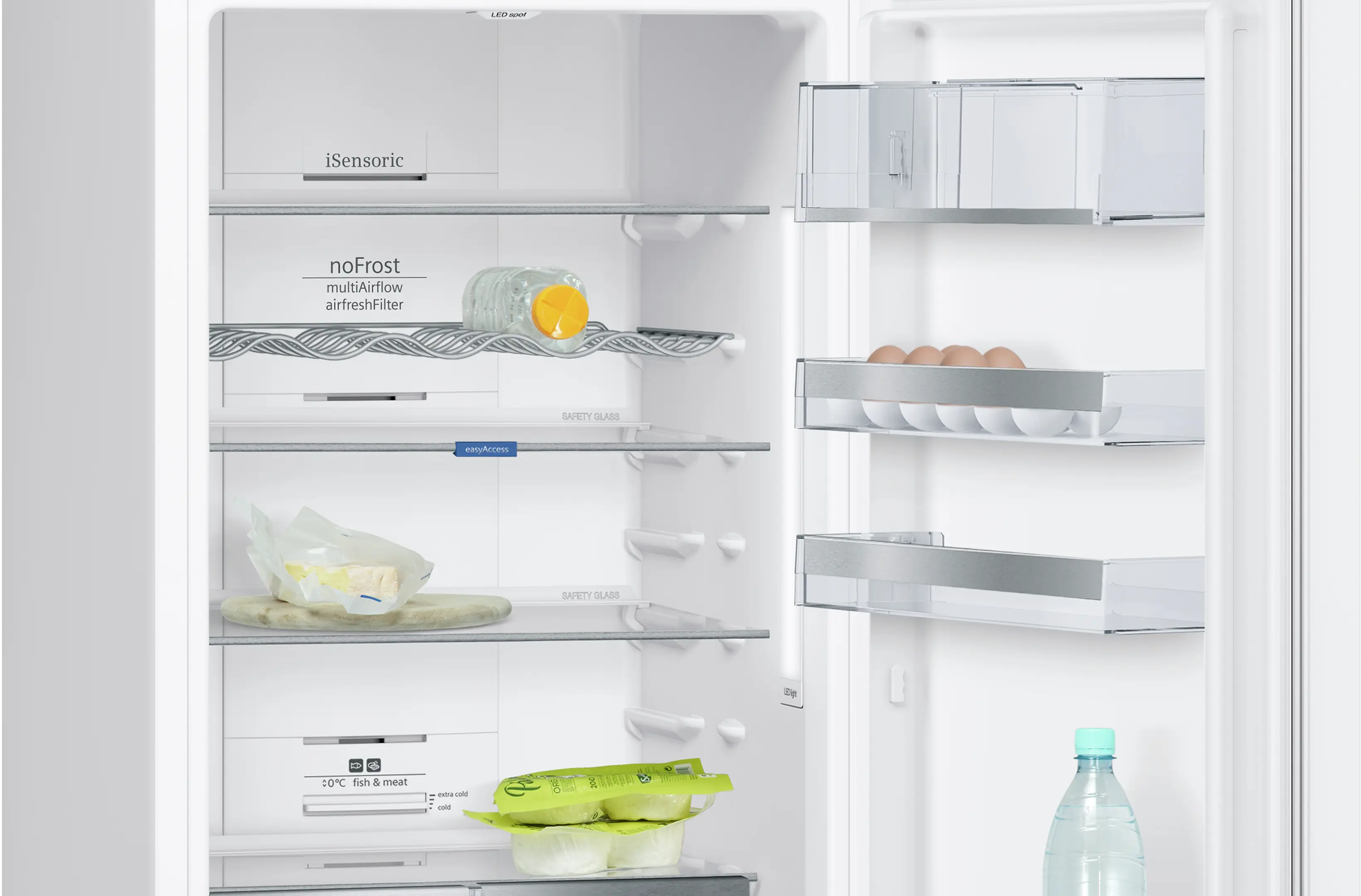 Korkealuokkainen ja tehokas LED-valaistus sivuseinissä ja katossa valaisee jääkaapin tasaisesti.