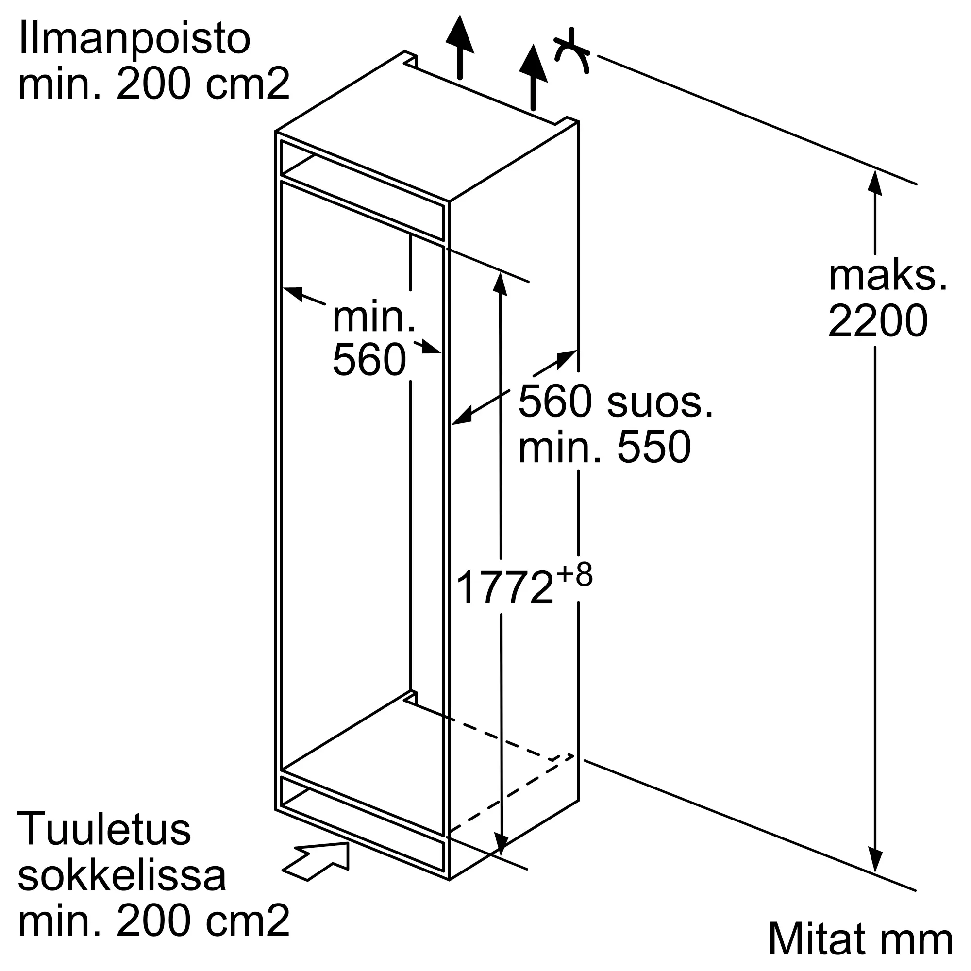 Jääkaapin tilavuus
