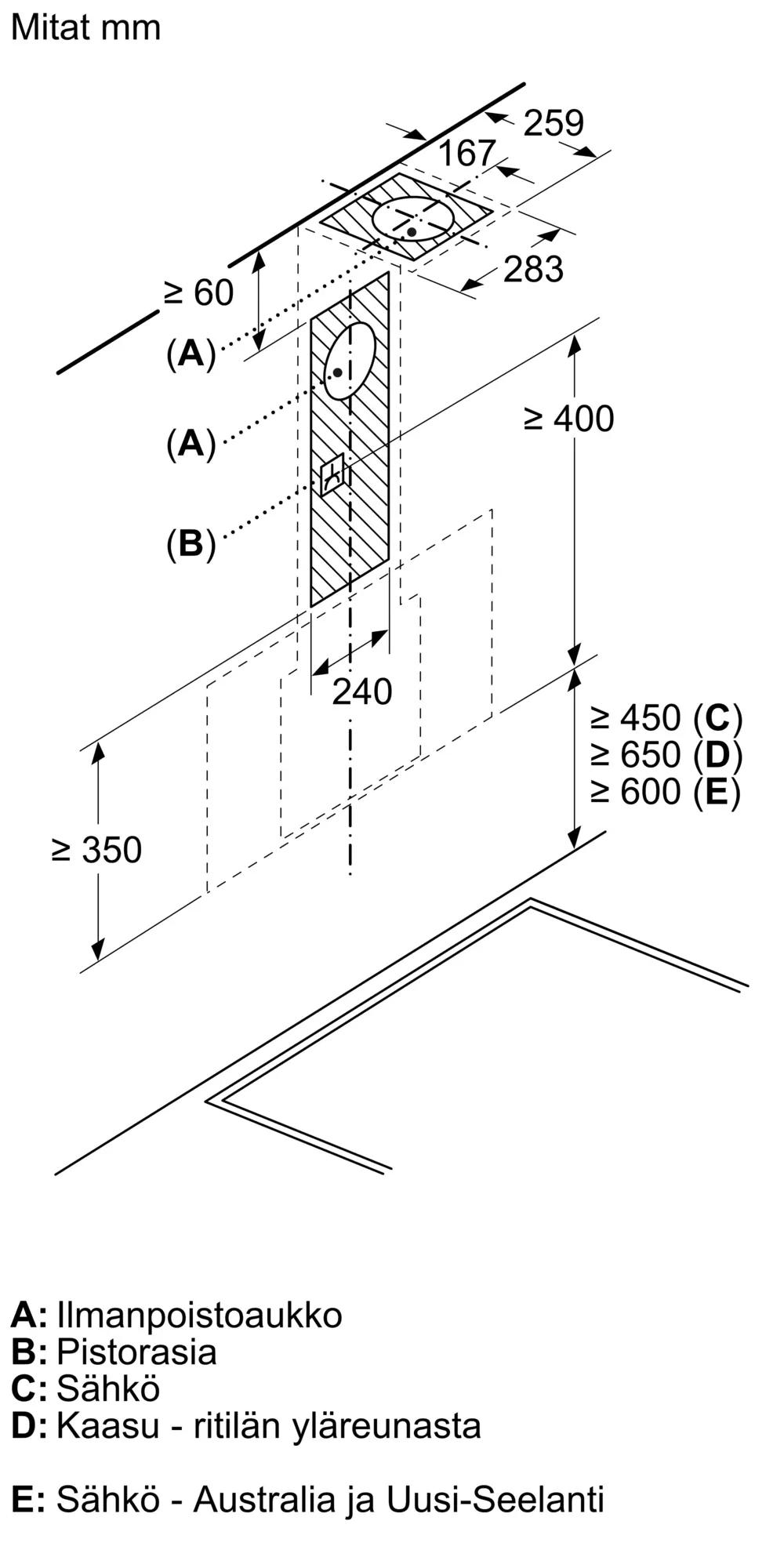 Hormiin liitettävä / Huoneilmaan palauttava (lisätarvike saatavilla erikseen)