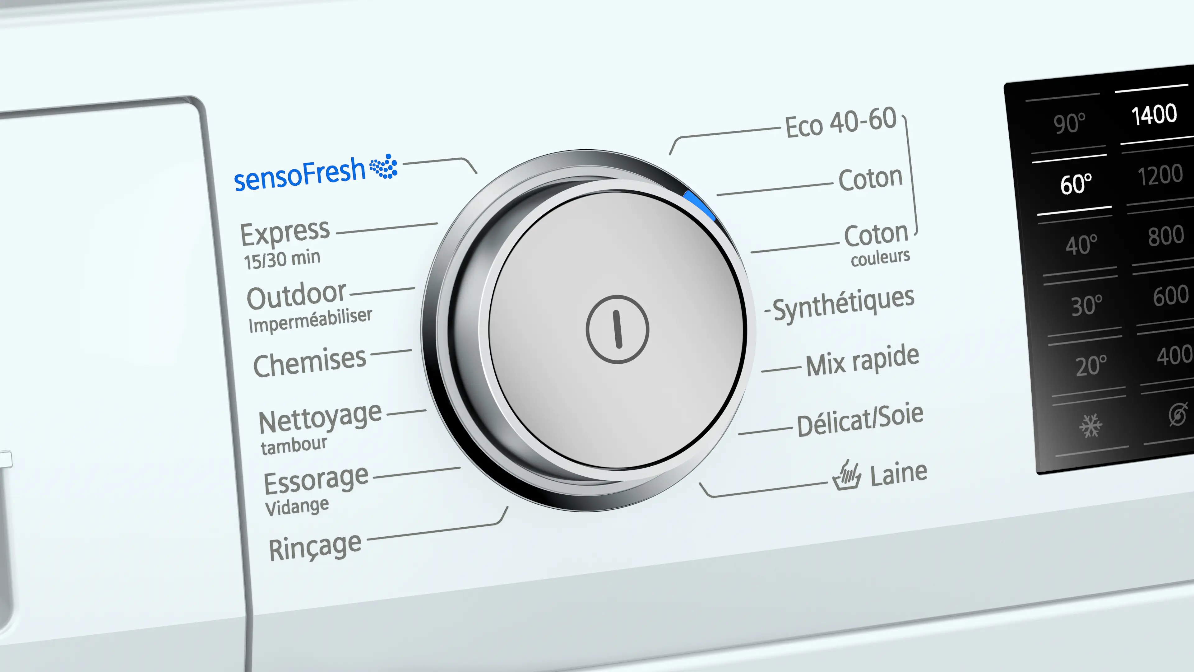 Vitesse d'essorage max.Note de bas de page 1: Les valeurs sont arrondies.: 1400 tours/min