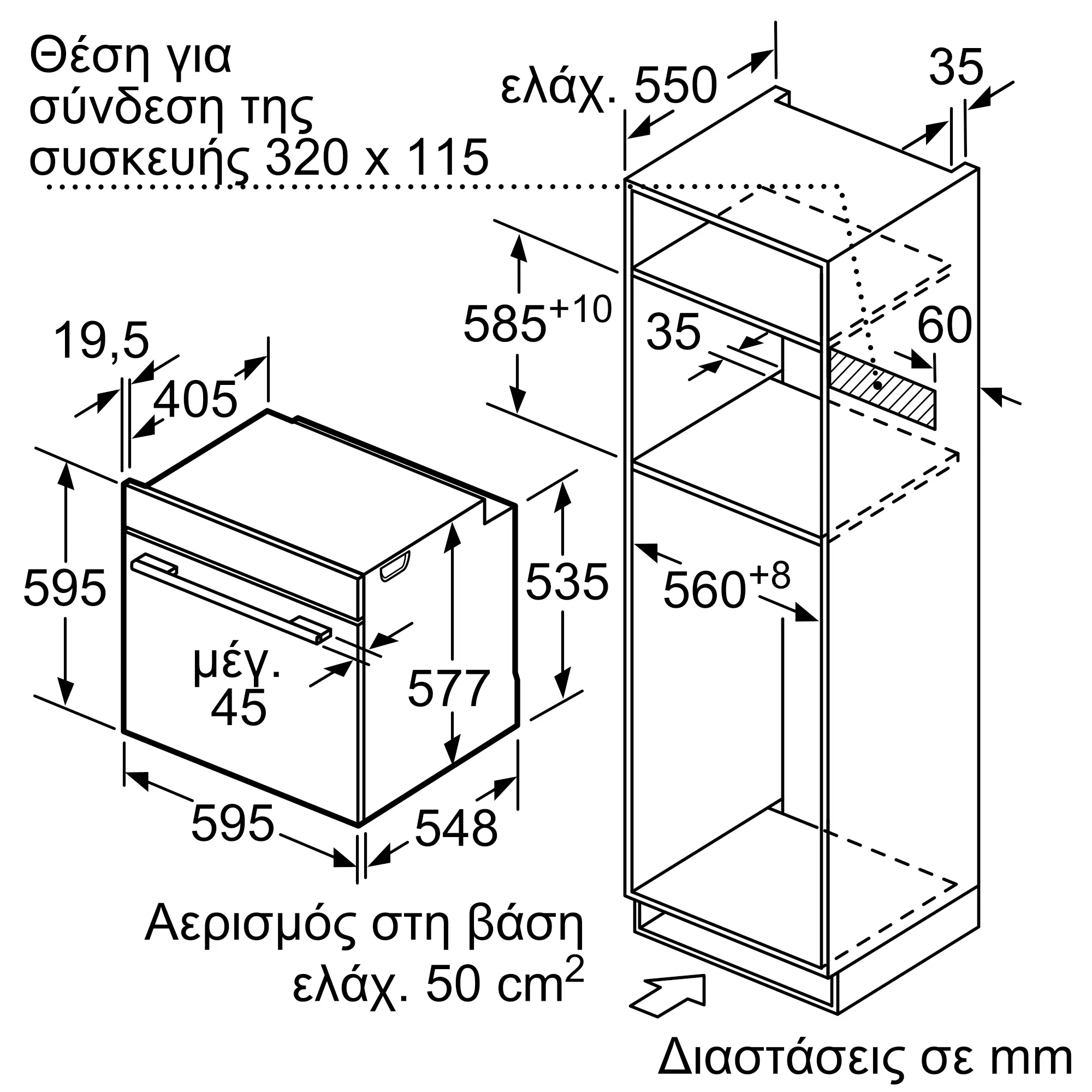 Διαστάσεις Εσωτερικής μονάδας: (ΥxΠxΒ)