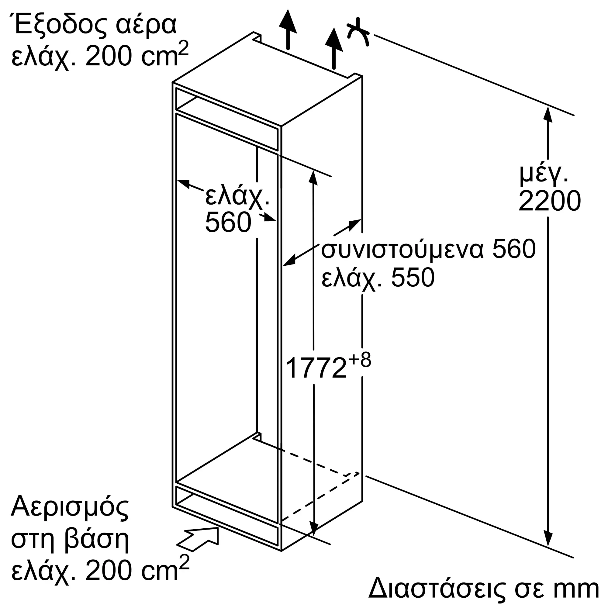 Διαστάσεις Εσωτερικής μονάδας: (ΥxΠxΒ)