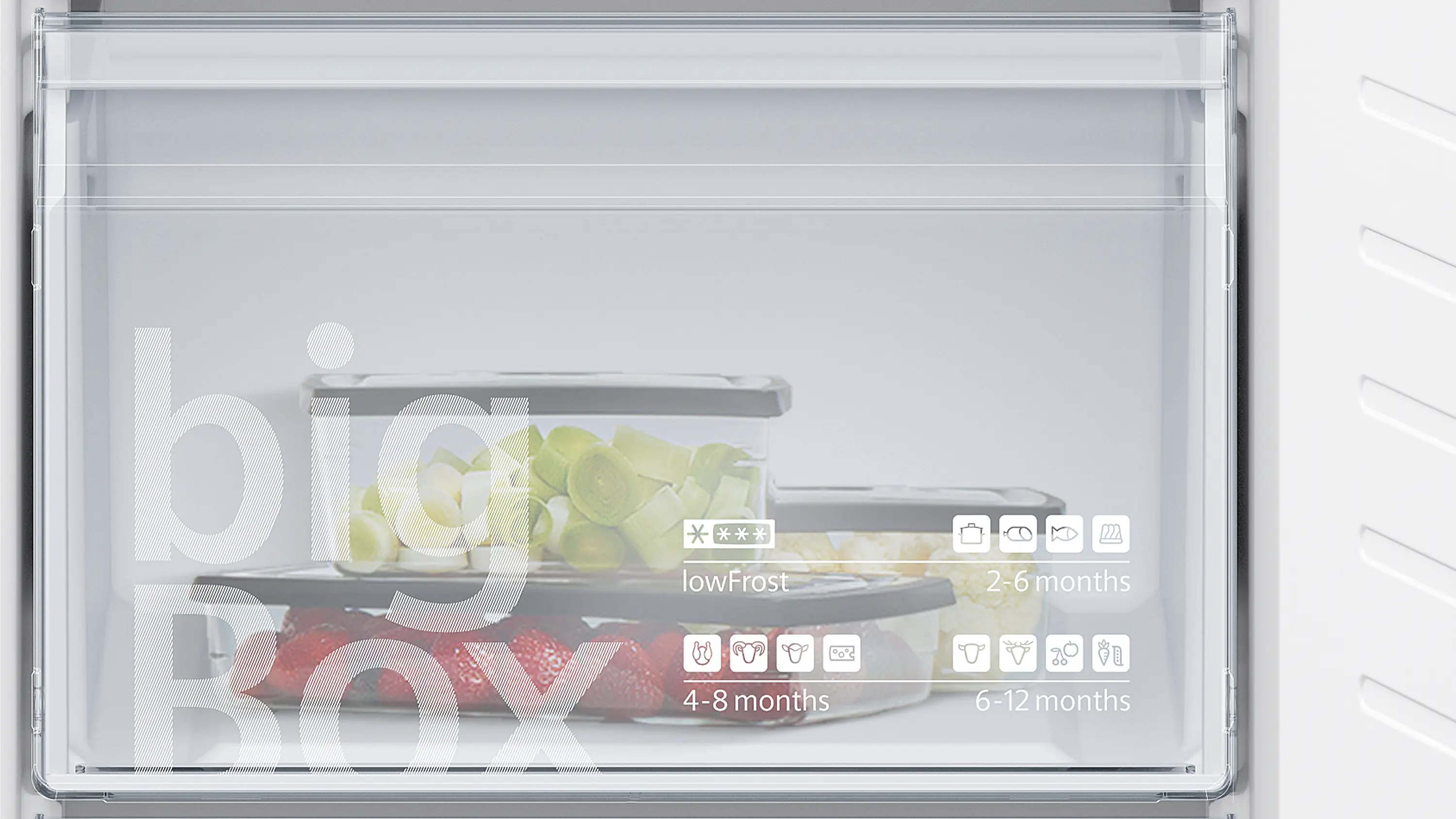 bigBox: Extra space for large frozen goods.