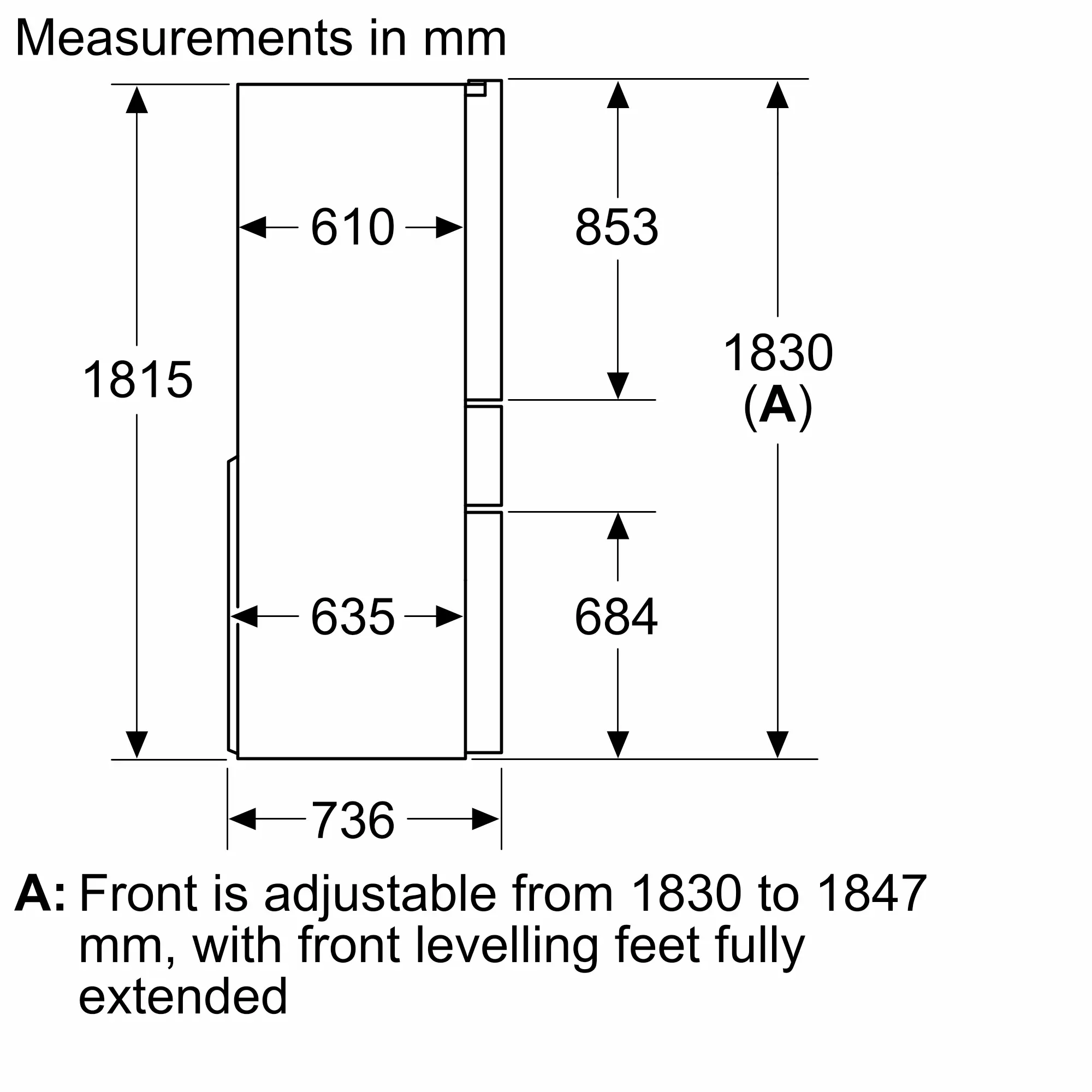 1830x905x736 mm
