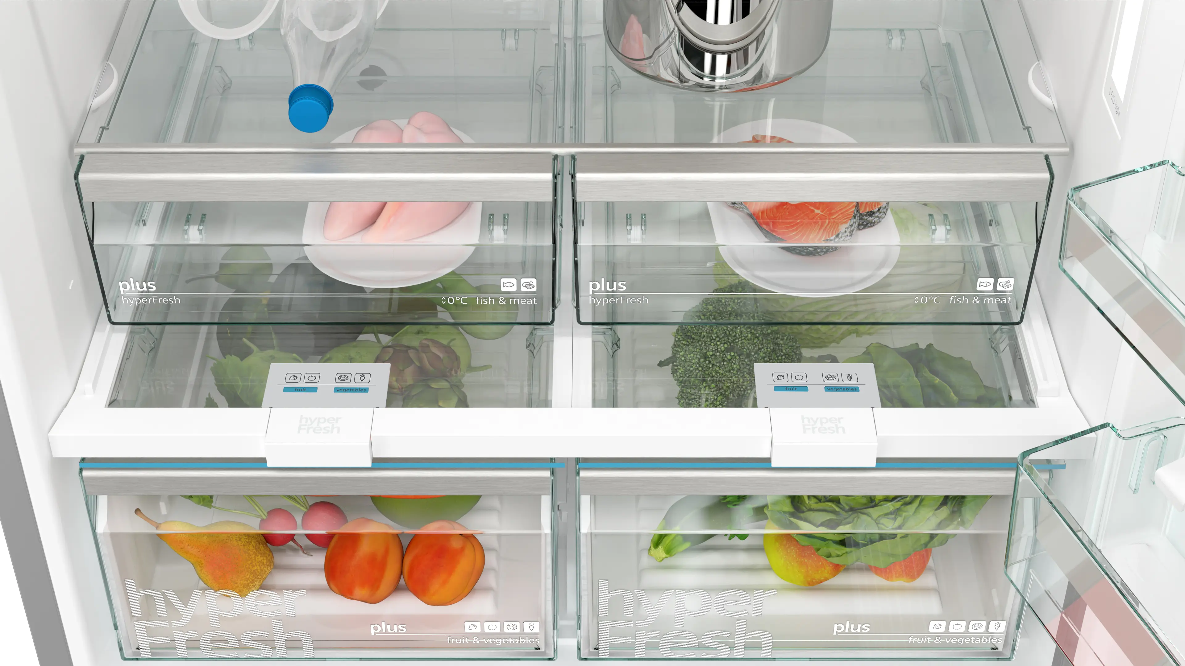 hyperFresh <0°C> plus: שומר על דגים ובשר טריים יותר זמן.