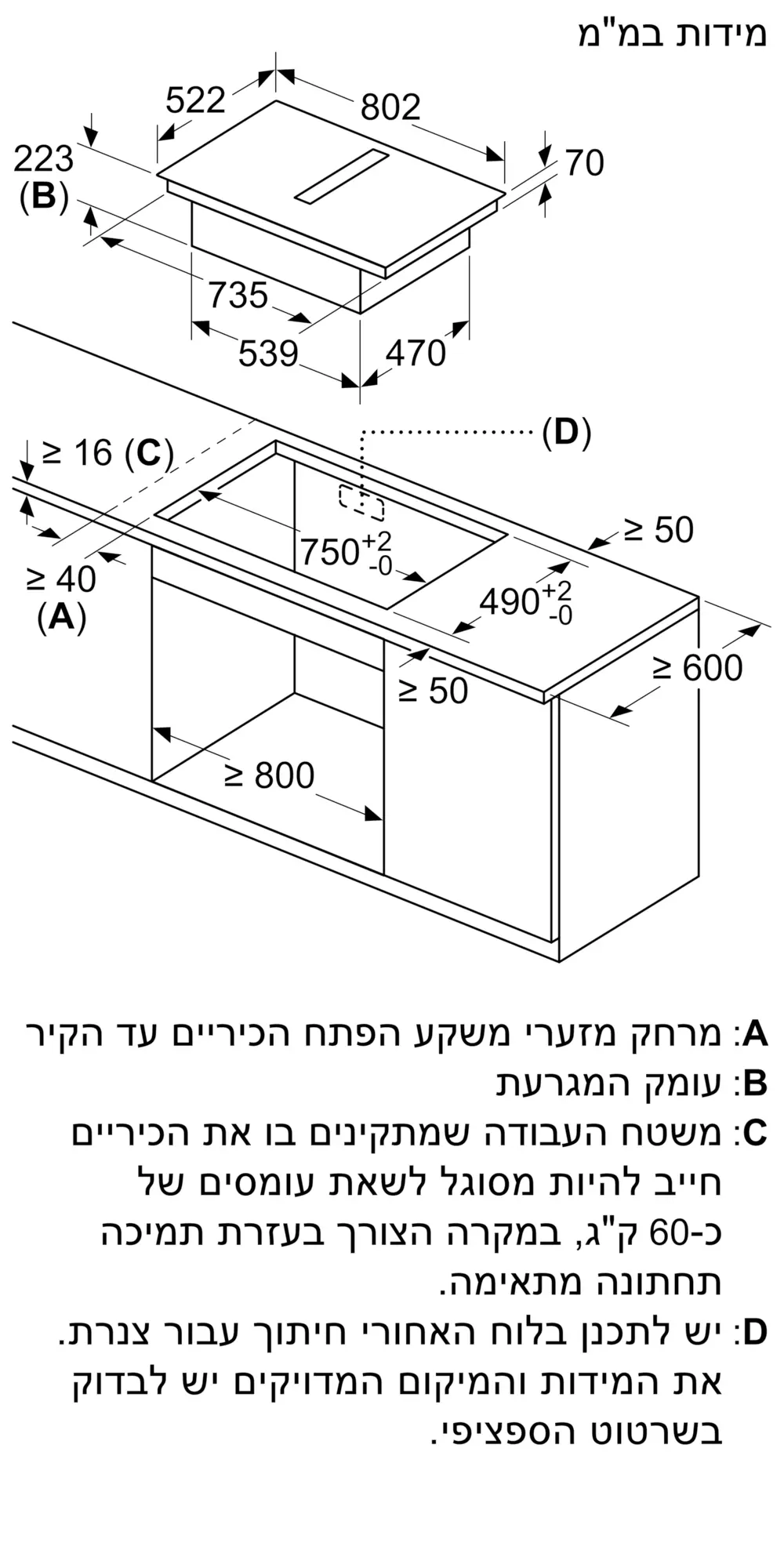 223x802x522 מ"מ