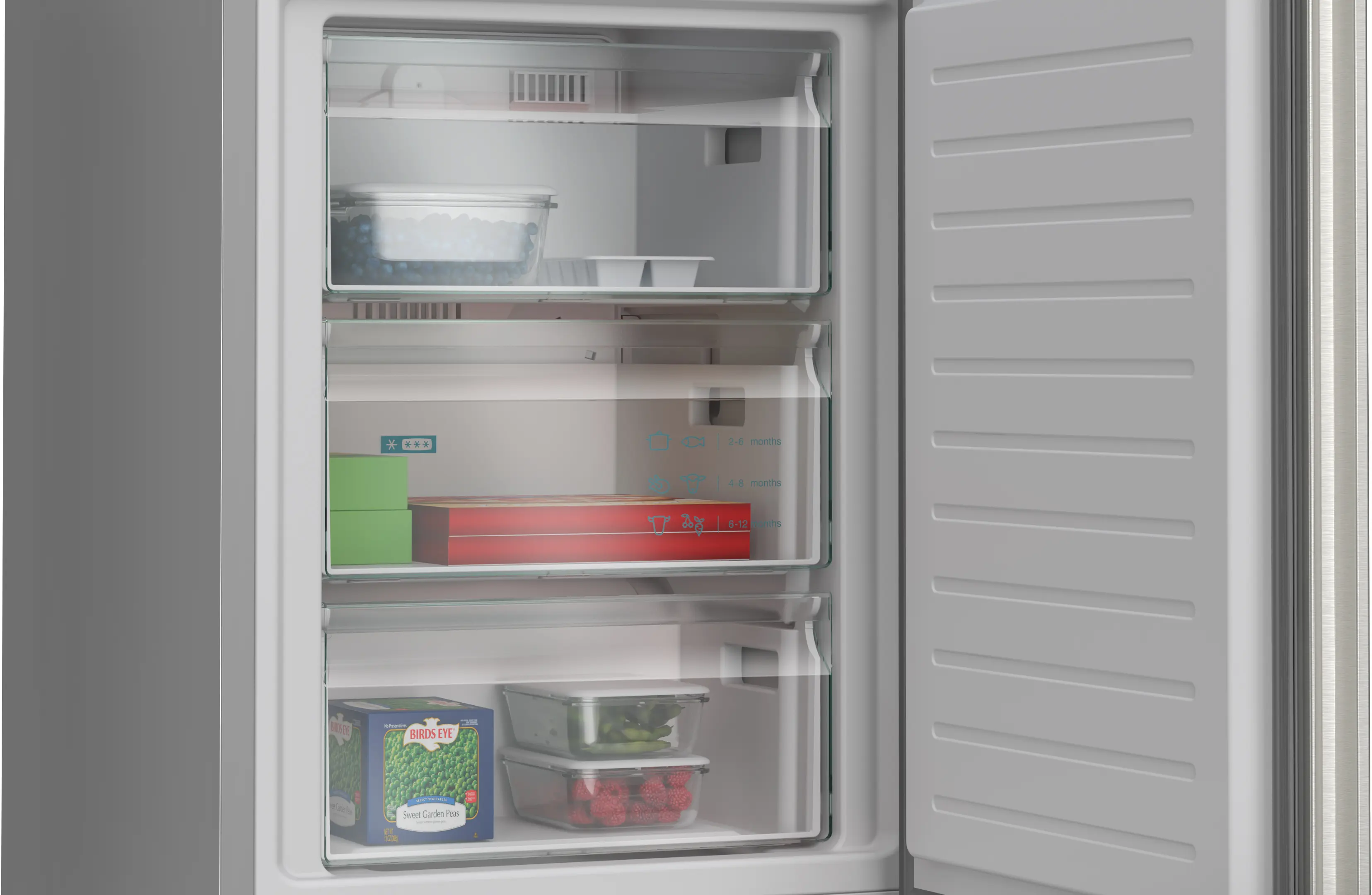 iQ300 מקרר עם מקפיא תחתון 203x60 cm פלדה מוברשת נגד טביעות אצבע, Total noFrostKG39NVIDG