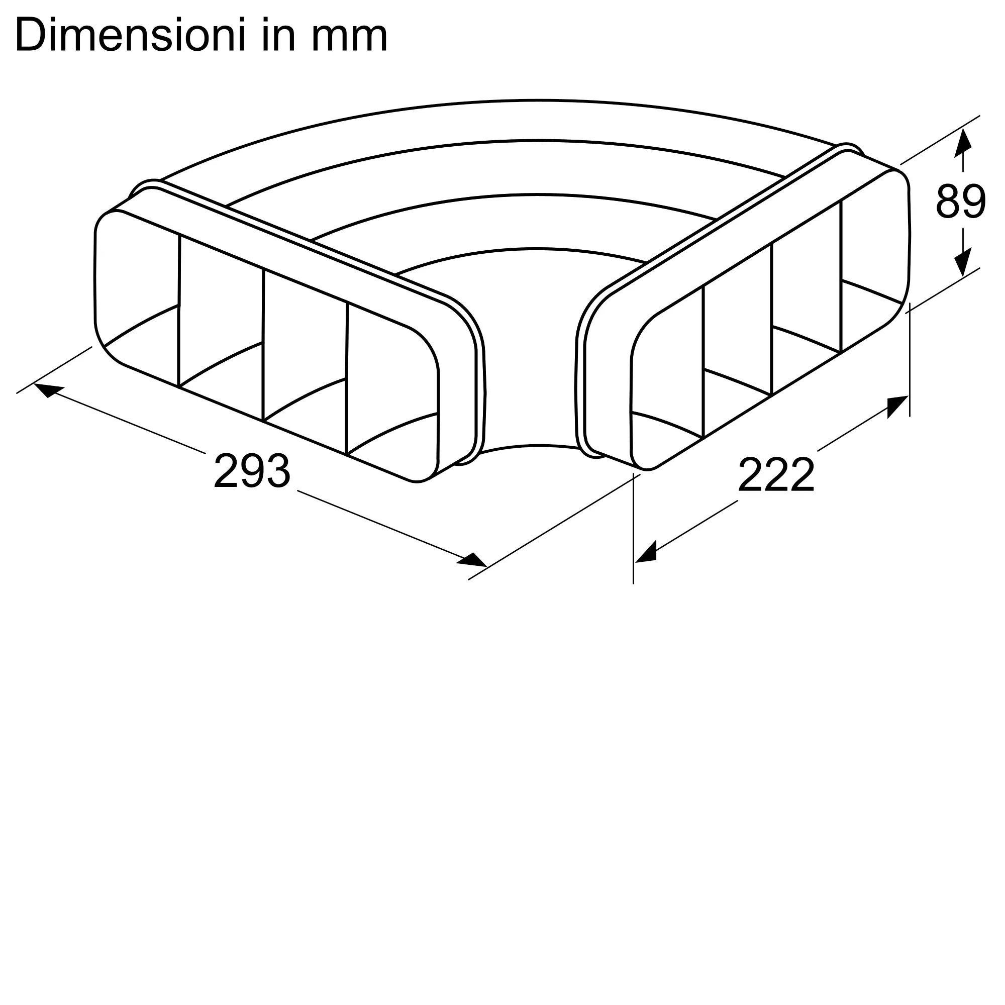 Condotto piatto curvo 90° in configurazione orizzontale (maschio).