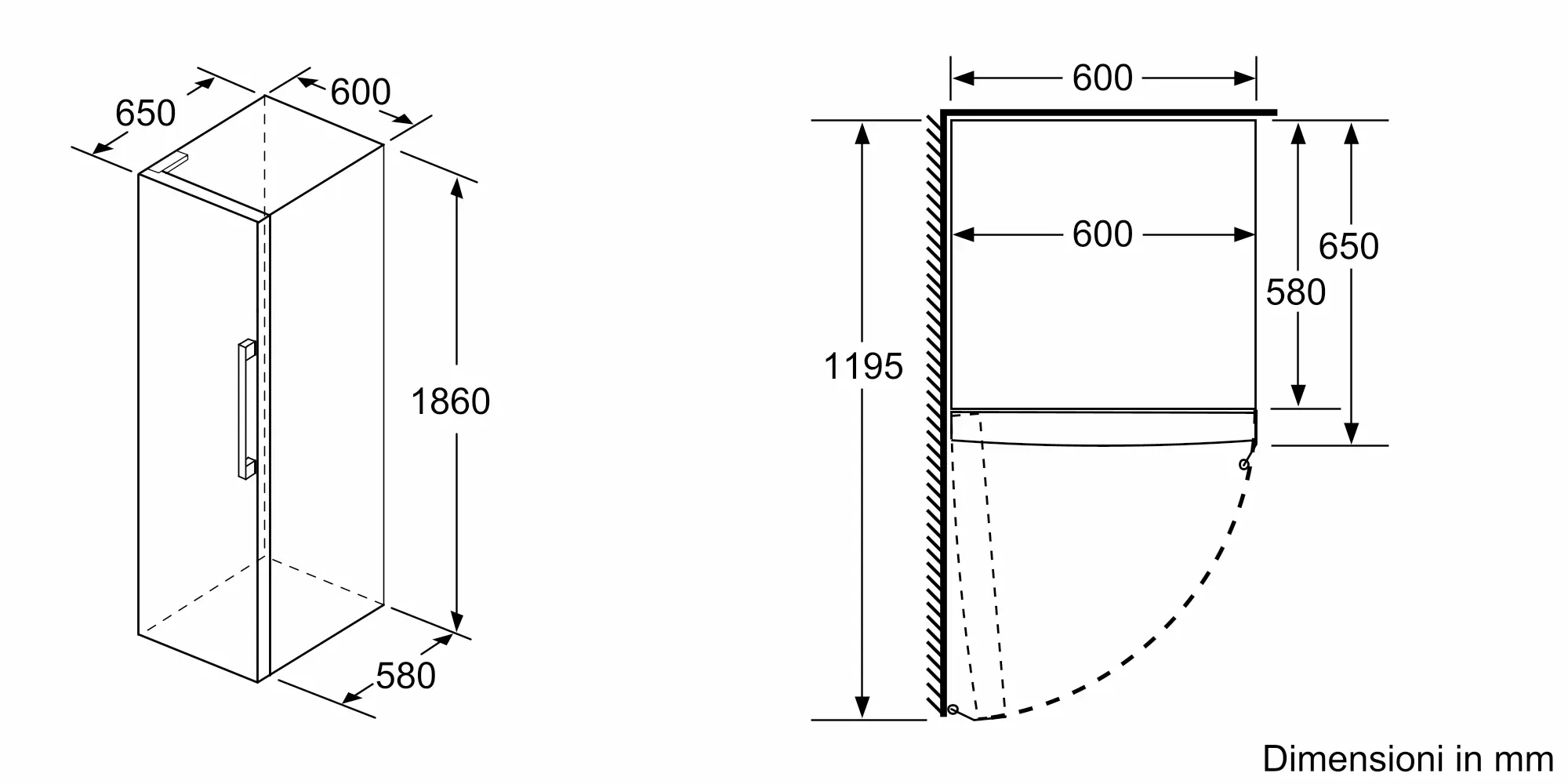1860x600x650 mm