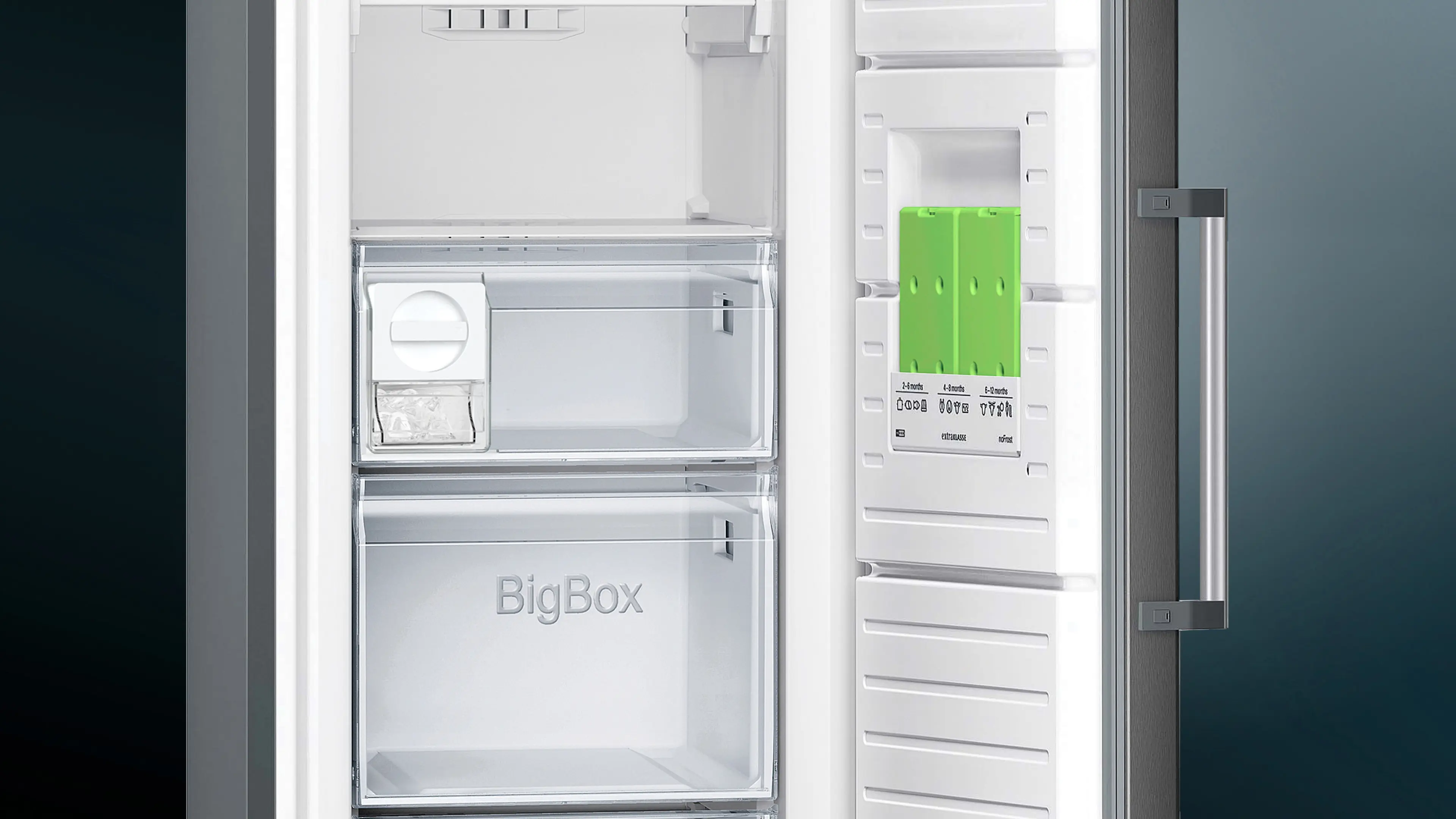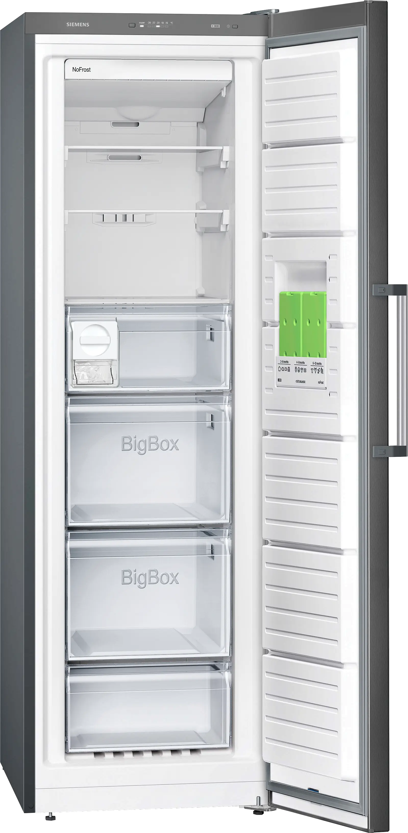 iQ300 Freistehender Gefrierschrank 186 x 60 cm Gebürsteter schwarzer Stahl mit Anti-FingerprintGS36NGXEV