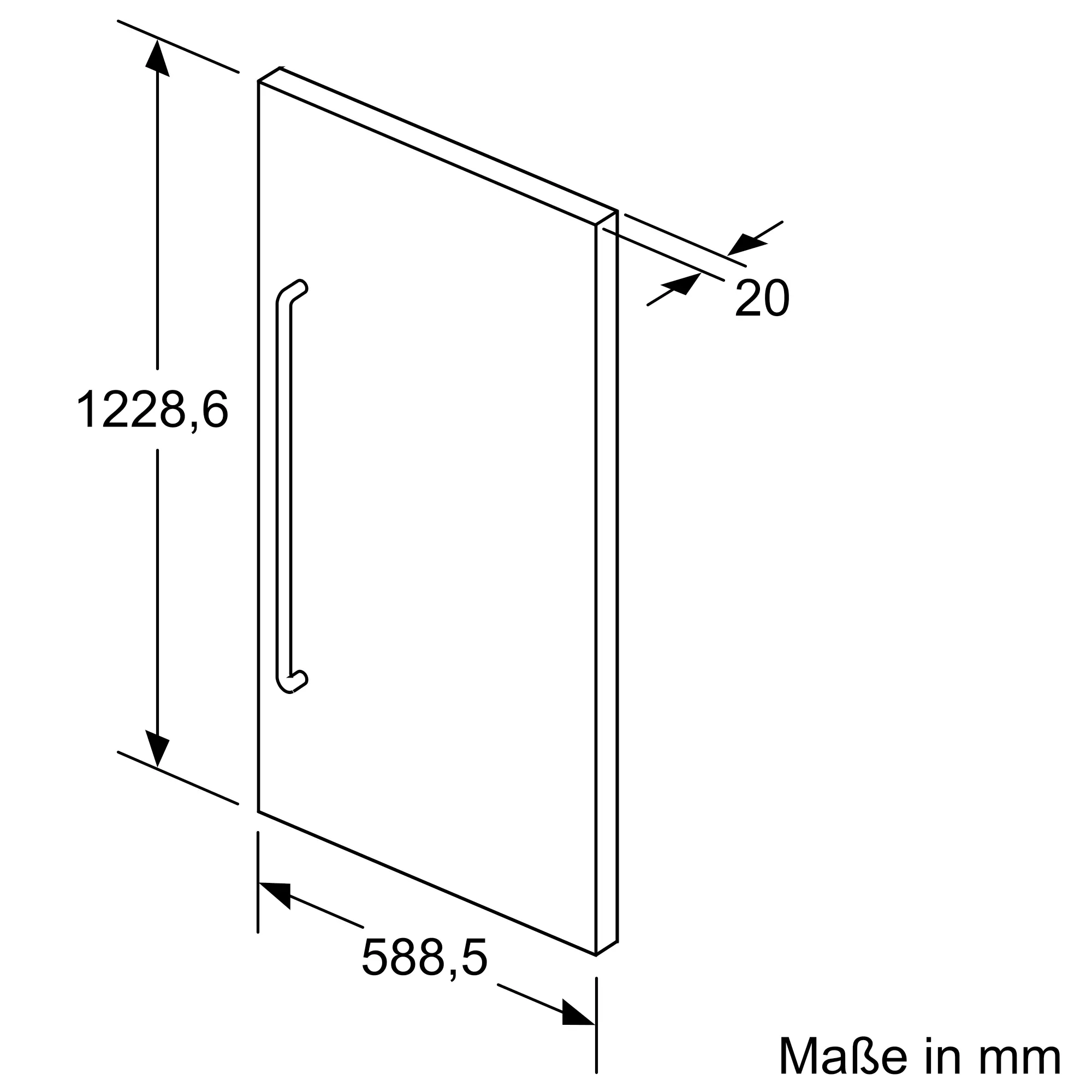 Edelstahlfront mit Griff für Einbau-Kältegeräte, 122cm Nische (nur für Flachscharnier geeignet)