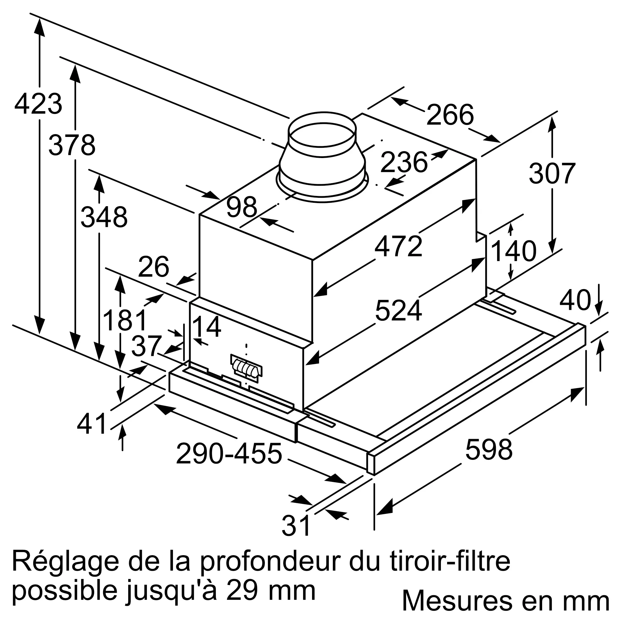 Débit d'aspiration max. en évacuation
