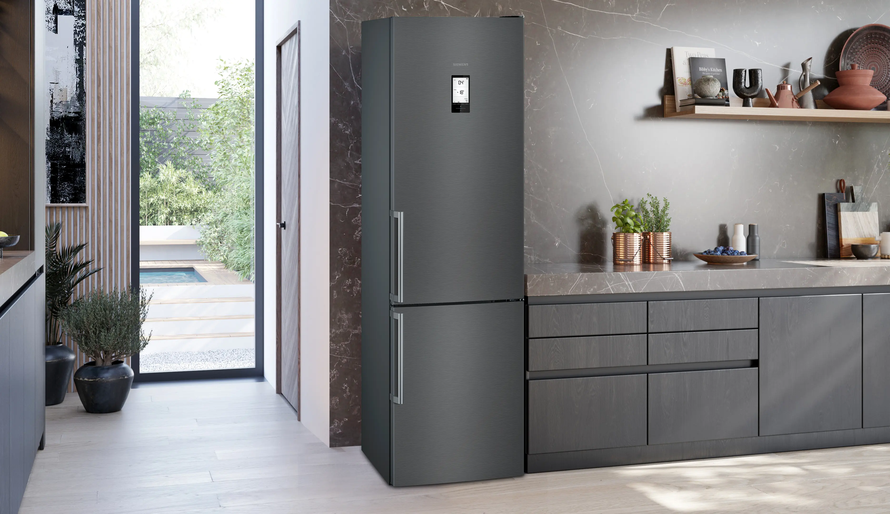 Tweedekans iQ500 Vrijstaande koel-vriescombinatie 203 x 60 cm Geborsteld zwart staal anti-fingerprint, Total noFrostKG39NAXCF-B