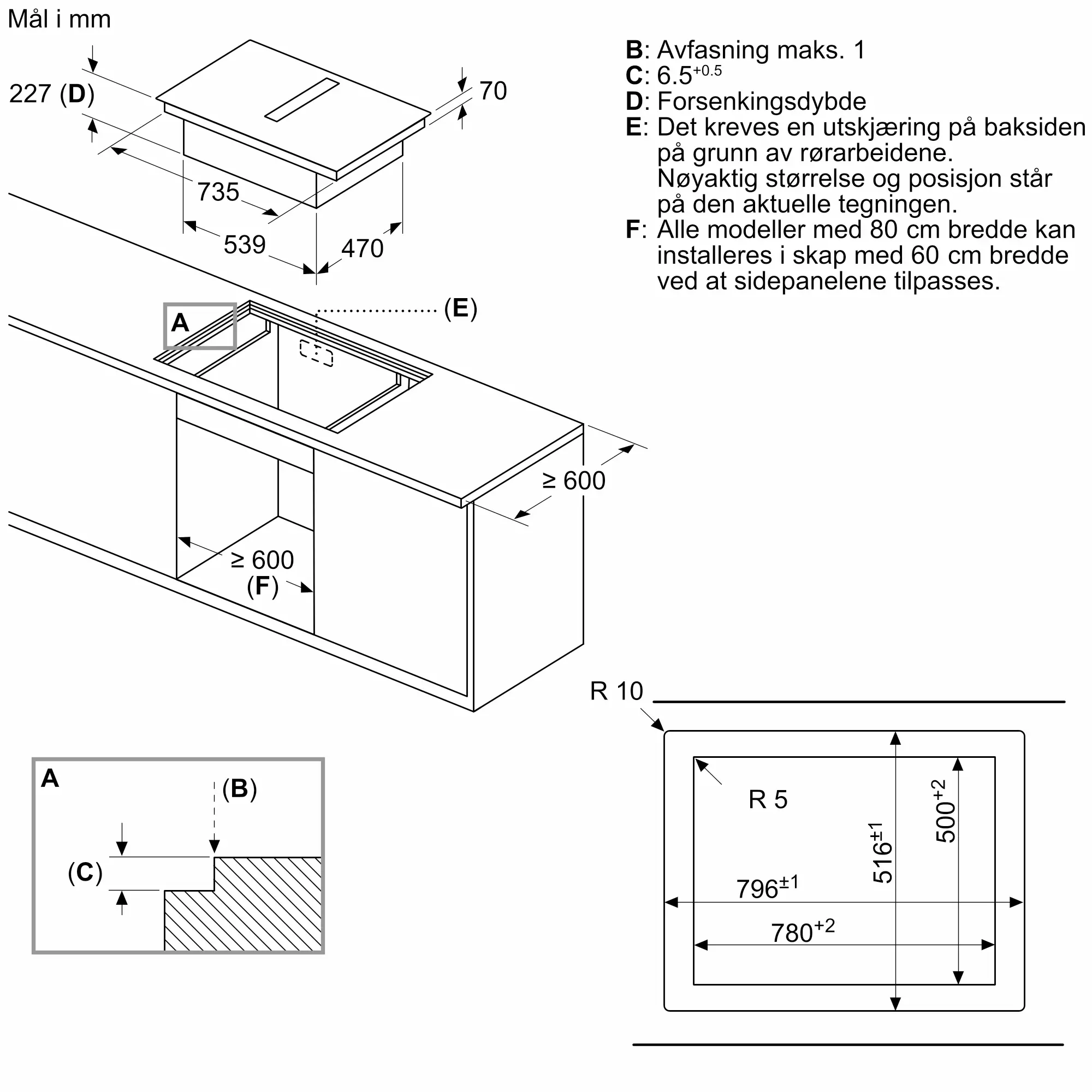 iQ500 Induksjonstopp med integrert ventilator 80 cm Innfelt monteringED807HQ26E
