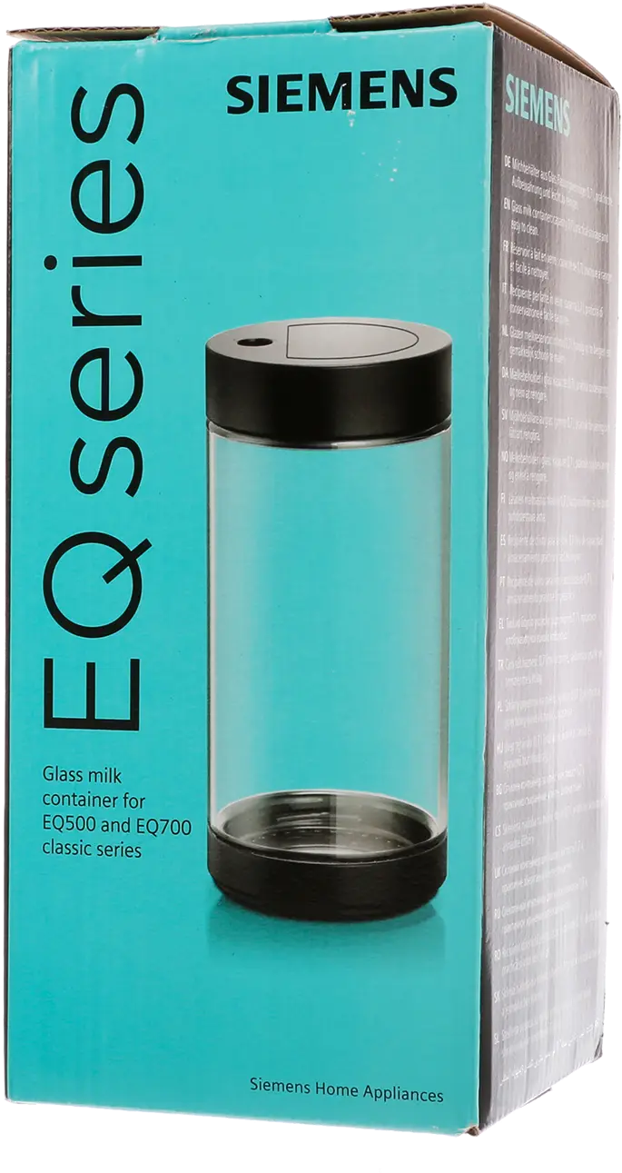 Szklany pojemnik na mleko do serii EQ: Praktyczne przechowywanie i łatwe czyszczenie w zmywarce.