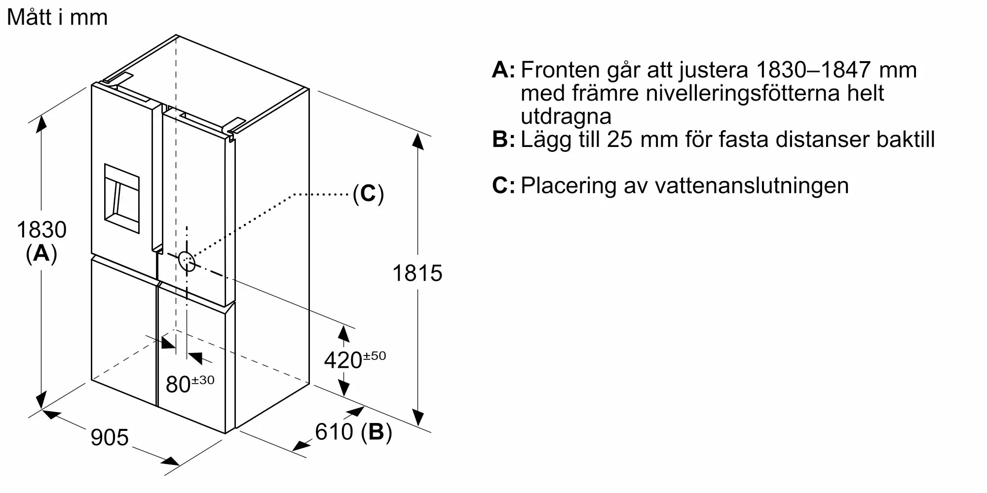 1830x905x731 mm